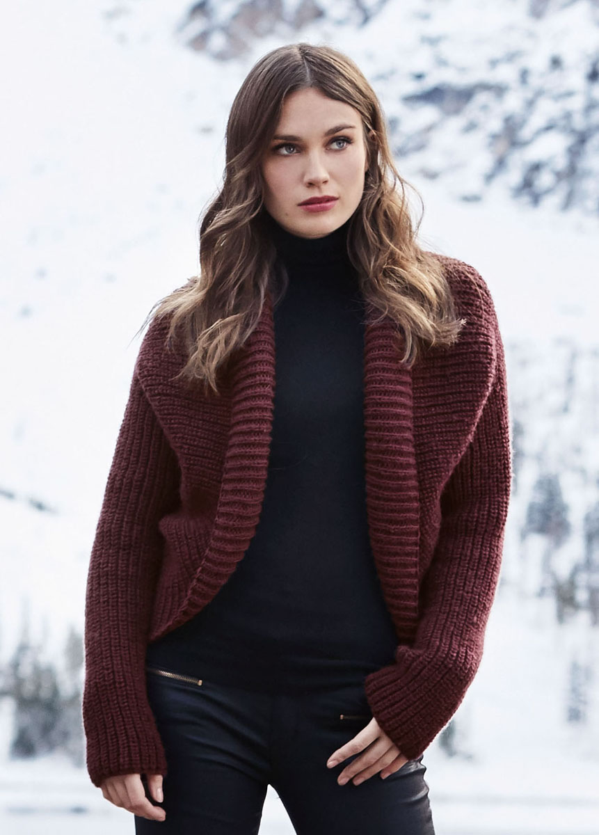 550 (600) g of Lana Grossa Merino Uno (100% superwash Merino wool; 125 m/50 g) in Wine (col 16). Size 5 mm needles; size 5 mm circular needle, 100 cm long