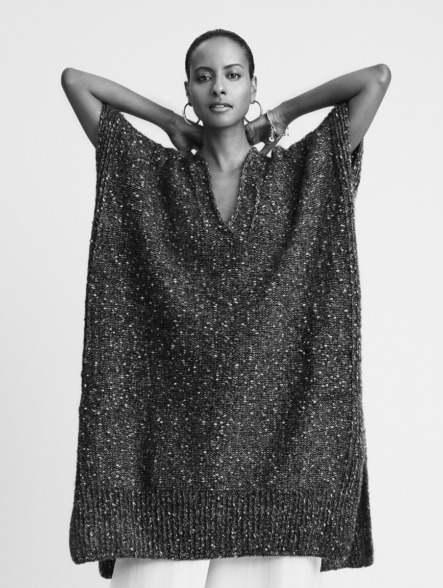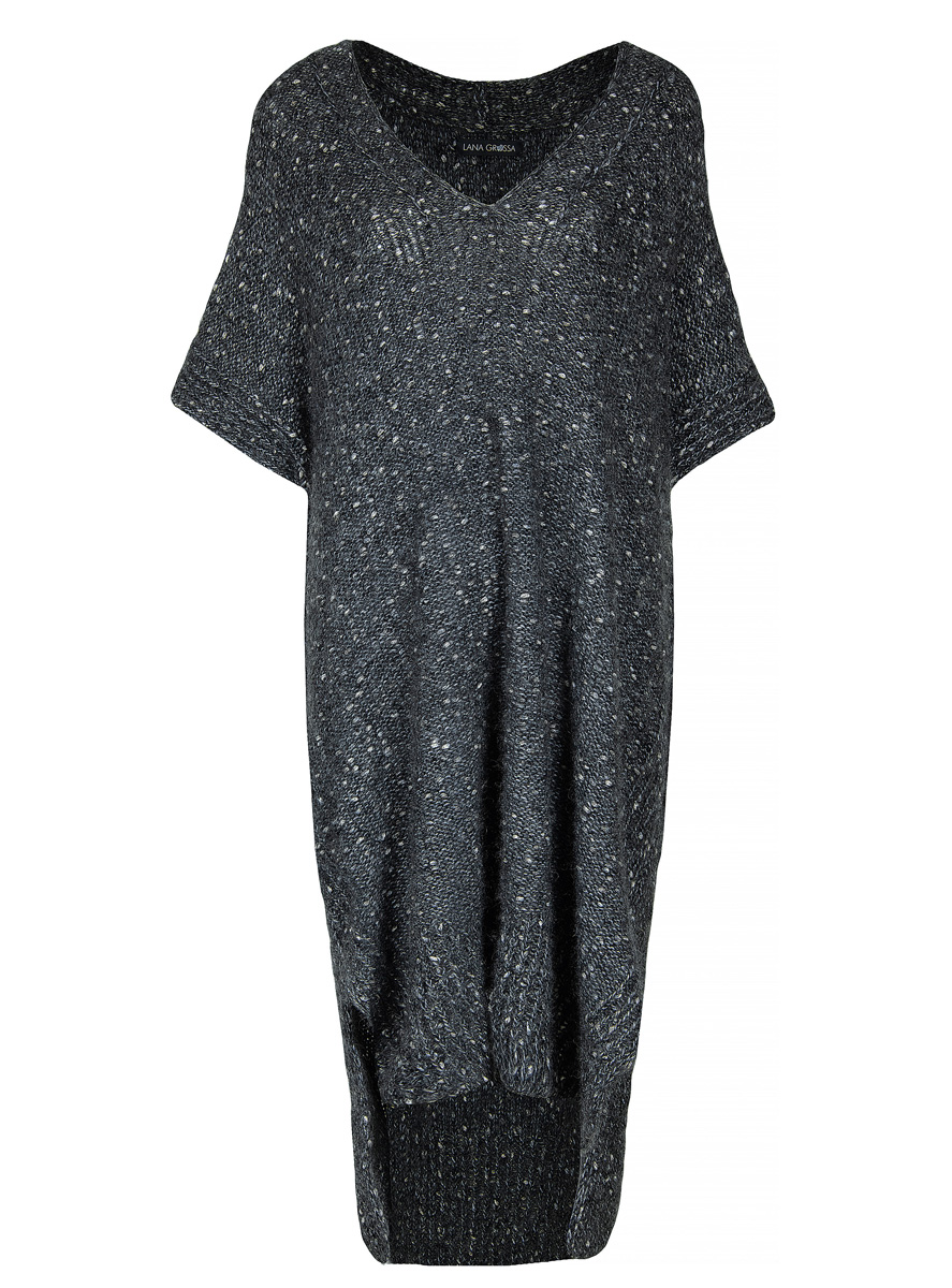 600 g of Lana Grossa Lala Berlin Fluffy (42% pure wool, 18% mohair, 19% alpaca, 21% polyamide; 130 m/50 g) in Dark Grey Mélange (col 107). Size 5 and 5.5 mm circular needles, each 80 cm long