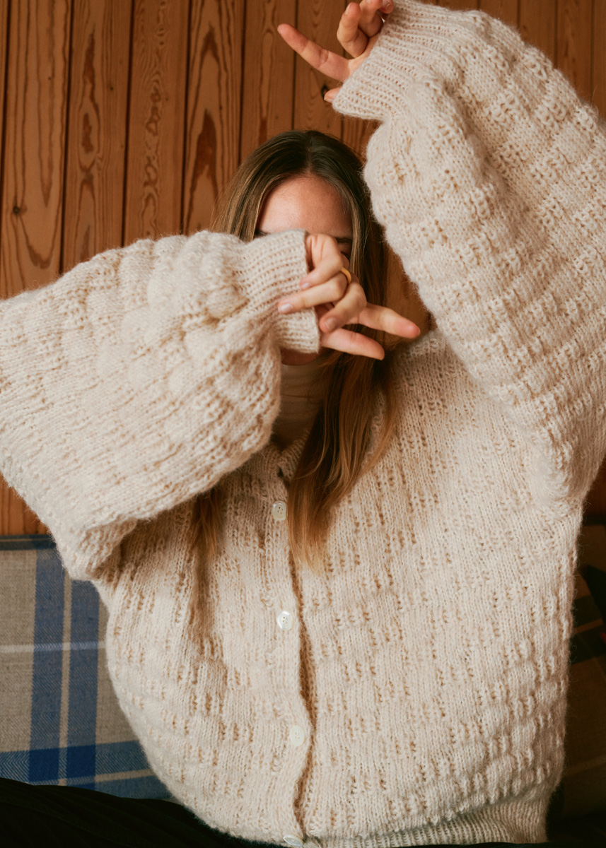 350 (400, 450) g of Lana Grossa Cara (57% baby alpaca, 33% cotton, 10% Merino wool) in Off White (col 1). Size 3.5 mm circular needles, 40 and 80 cm long; size 4.5 mm circular needle, 80 cm long