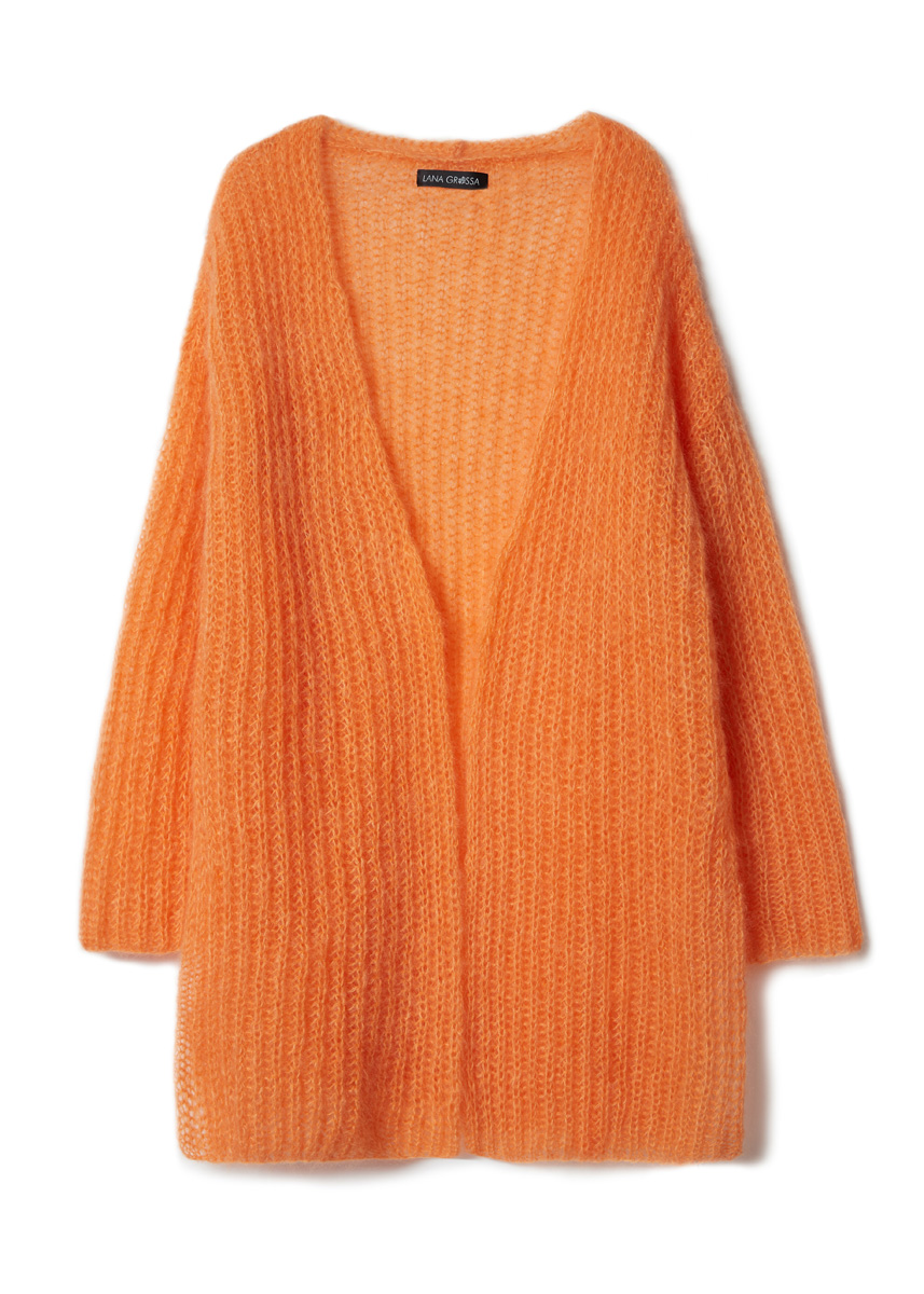 250 (275, 300, 325) g of Lana Grossa Silkhair (70% superkid mohair, 30% silk; 210 m/25 g) in Pumpkin (col 190). Size 7 mm needles.