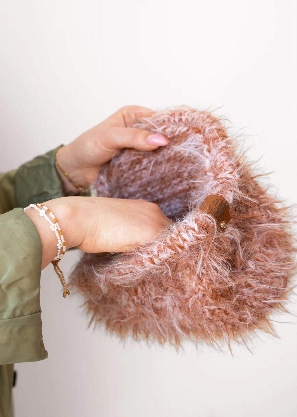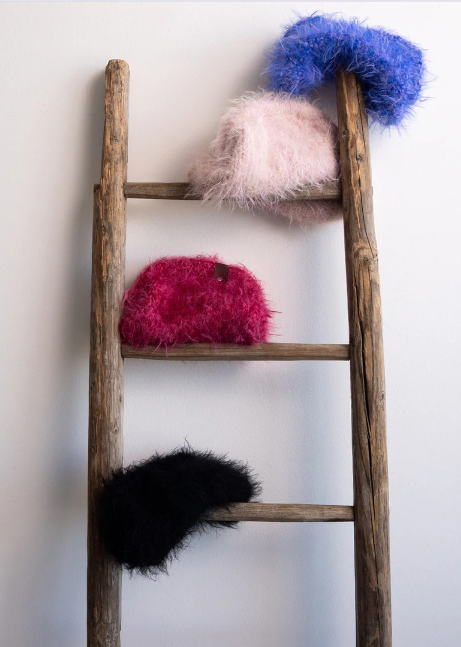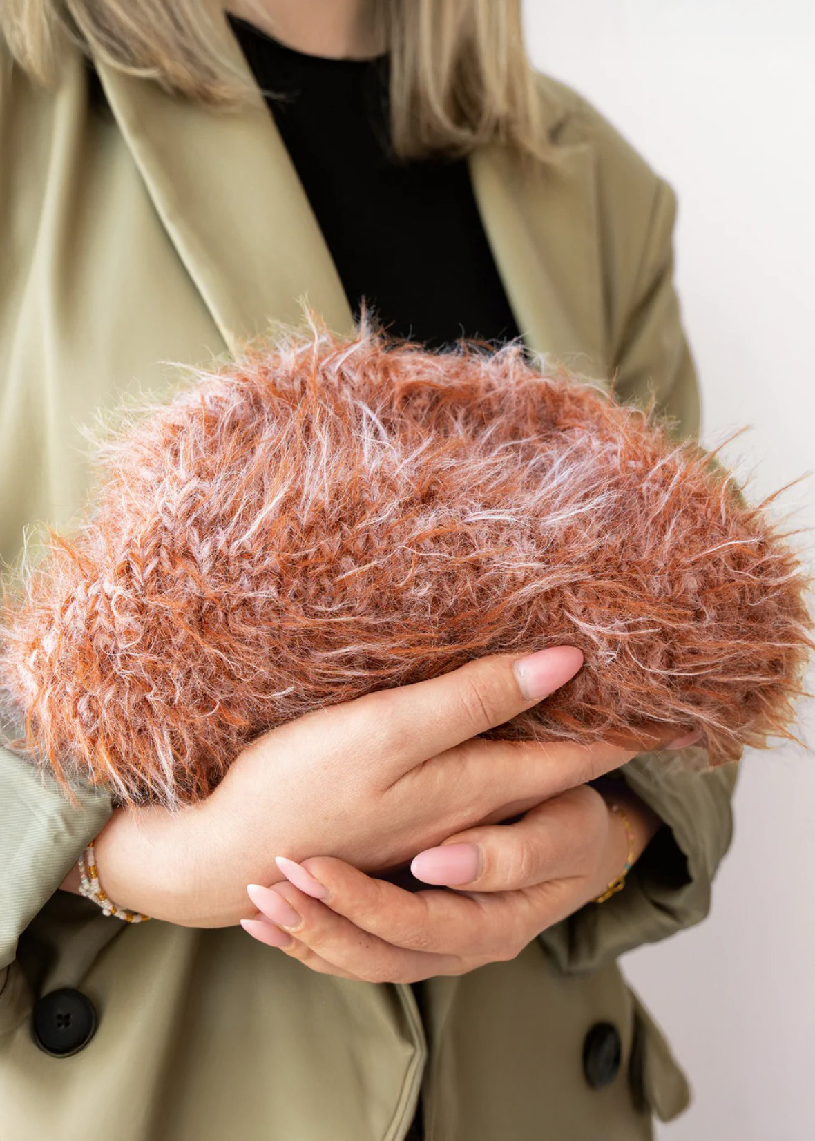 Lana Grossa Basta (50% Merino wool, 50% polyamide; 100 m/50 g) 50 g in Rust Brown (col 5) and 50 g in Violet Pink (col 18)
