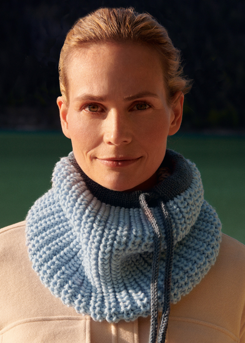 200 g of Lana Grossa Superbingo (100% pure wool; 55 m/50 g) in Light Blue (col 69) and 50 g of Lana Grossa Cool Wool Big (100% pure wool; 120 m/50 g) in Steel Grey (col 981). Size 4 and 6 mm circular needles, each 40 cm long; 2 size 4 mm double-pointed needles [dpns]