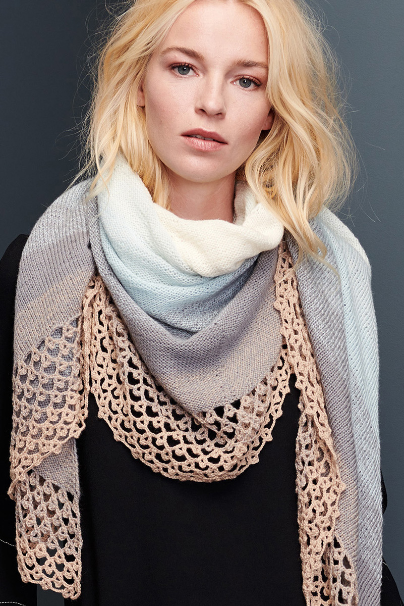 150 g of Lana Grossa Twisted Cashmerino (90% pure wool, 10% cashmere; 900 m/150 g) in Natural/Mint/Grey/Beige (col 801). Size 3 mm circular needles, 60, 80 and 100 cm long; size 3.5 mm crochet hook