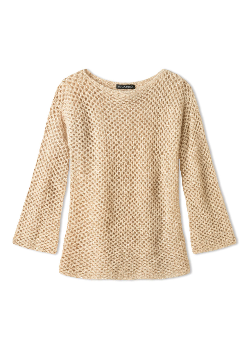150 (150, 175, 175) g of Lana Grossa Setasuri (69% Suri alpaca, 31% silk; 212 m/25 g) in Light Beige (col 58); 250 (275, 300, 325) g of Lana Grossa Glamour (55% polyamide, 45% polyester; 115 m/25 g) in Beige (col 10). Size 4 mm crochet hook.