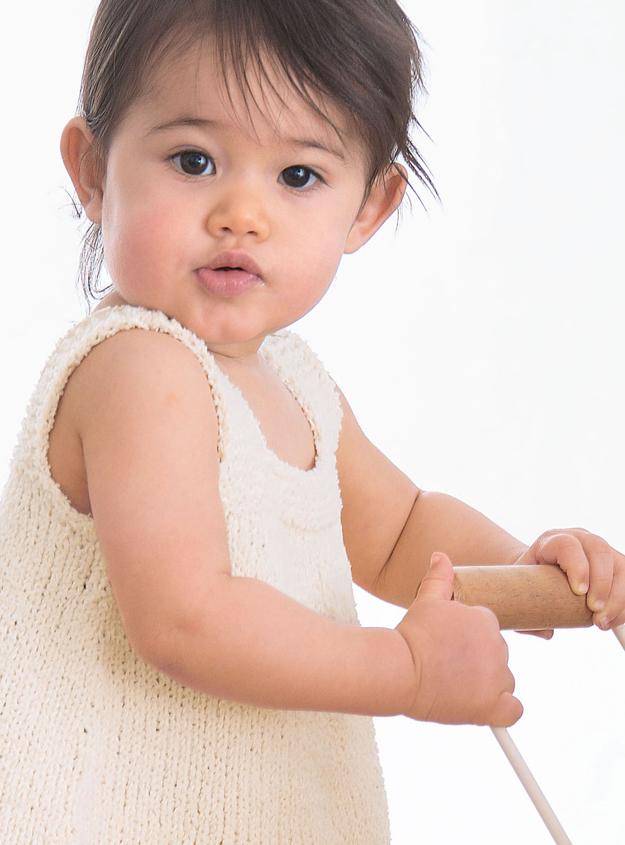 100 (100, 150) g of Lana Grossa Baby Soft (60% polyamide, 40% cotton; 150 m/50 g) in Ecru (col 2). Size 3.5 mm circular needle, 40 cm long; size 3 mm crochet hook