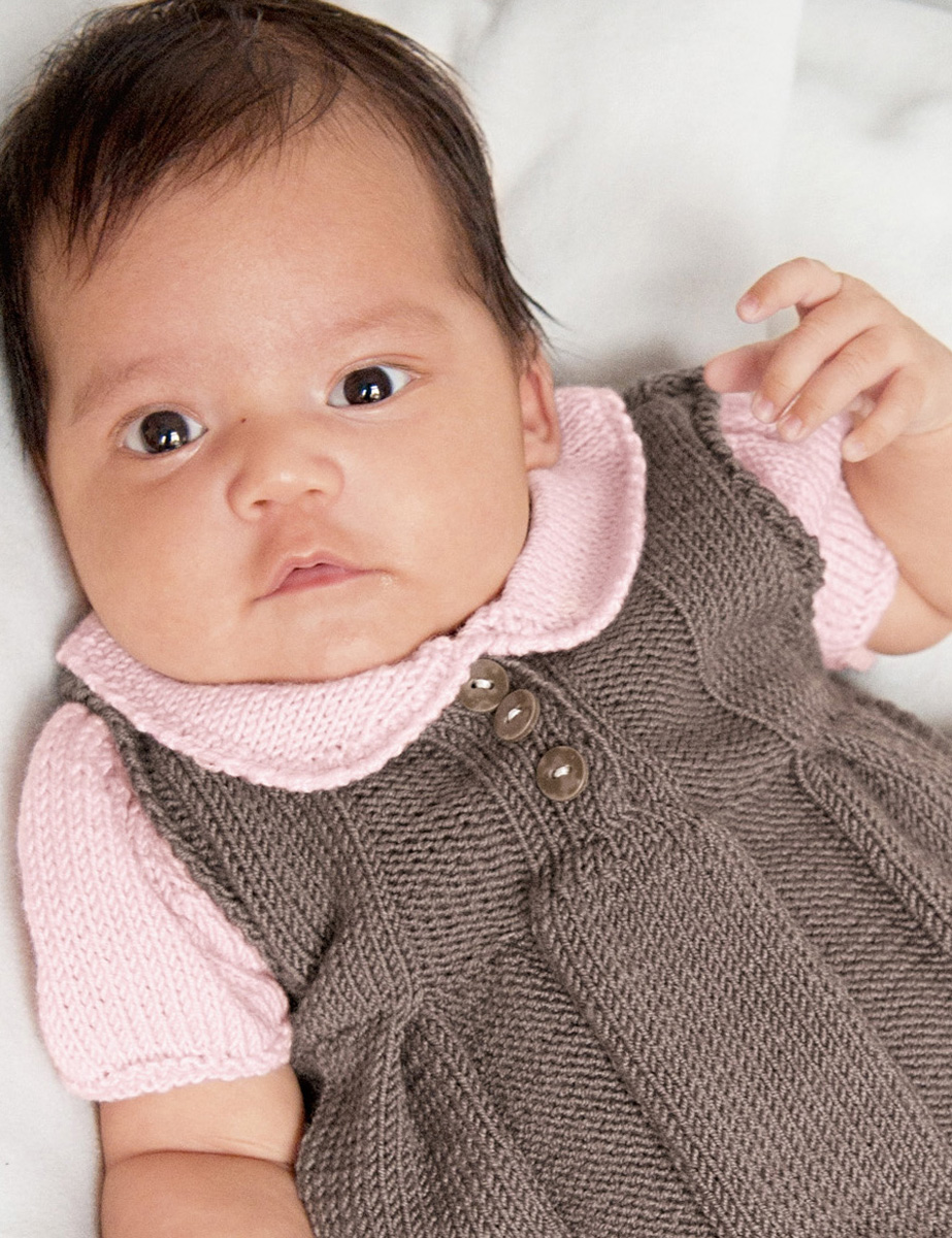 100 g of Lana Grossa Cool Wool Baby (100% pure wool; 220 m/50 g) in Grey/Brown (col 211). Size 3 mm needles; cable needle [cn]; size 2.5 mm crochet hook; three buttons