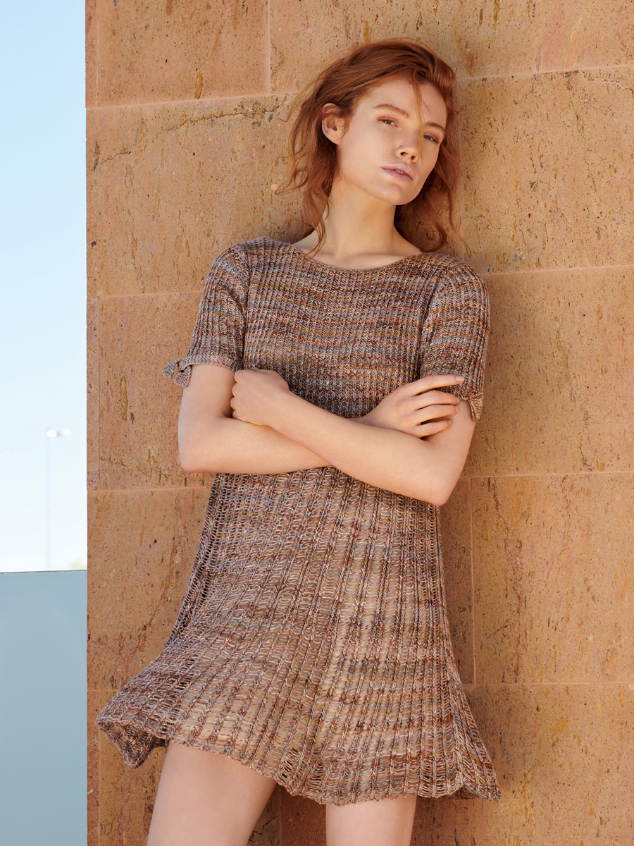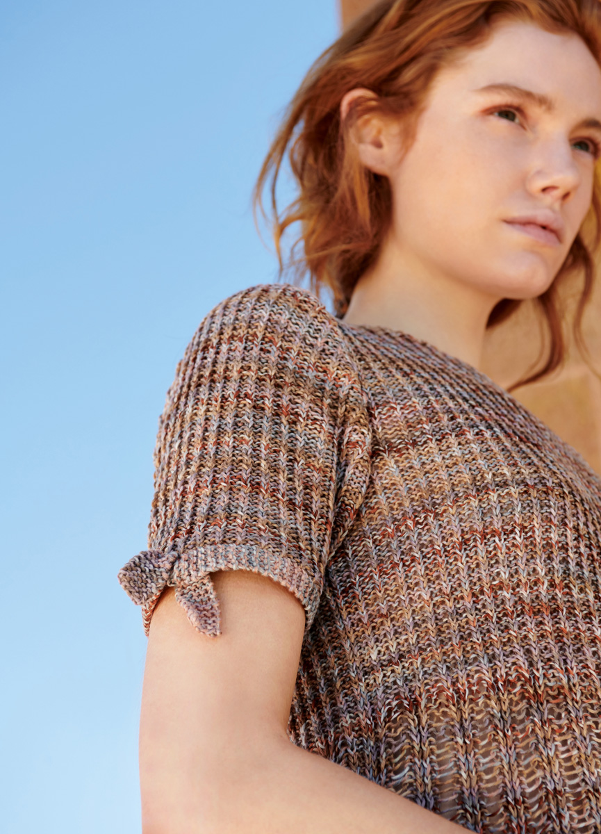 400 g of Lana Grossa Pappagallo (50% cotton, 50% microfiber; 340 m/100 g) in Antique Pink/Greige/Copper/ Light Grey/Taupe/Grey-Purple (col 8). Size 3 mm needles; size 3 mm circular needle, 120 cm long; size 3 mm crochet hook