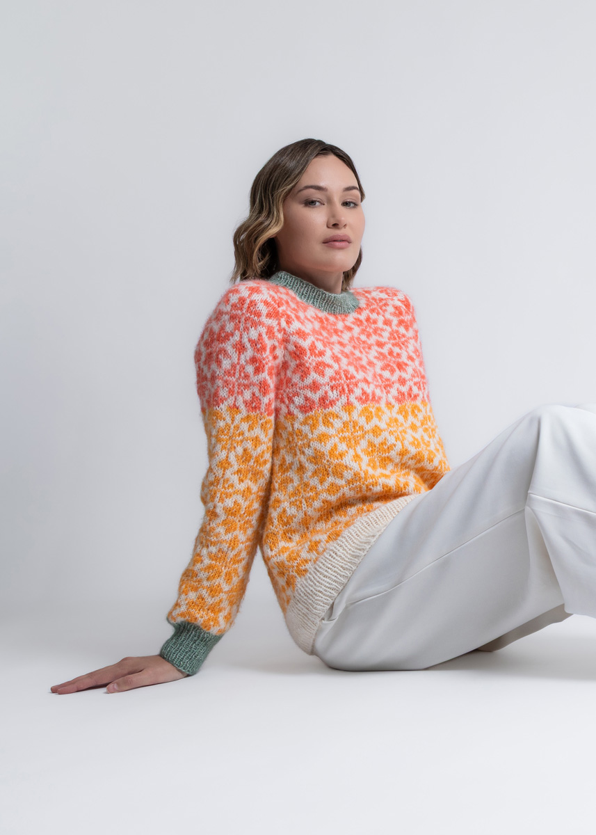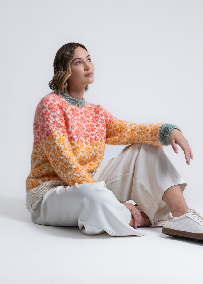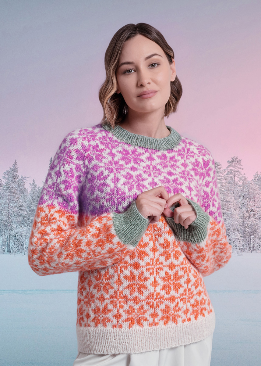 The pullover knitted in rounds up until the armholes, back and front are finished seperately. Sleeves are knitted in rounds up until the raglan decreases. The pullover has a total length of 61 (63 - 65 - 67 - 69 - 71) cm and a positive ease of 15 cm at 80 cm bust circumference (16 cm at 88 cm bust circumference - 8 cm at 96 cm bust circumference - 10 cm at 104 cm bust circumference - 7 cm at 116 cm bust circumference - 5 cm at 128 cm bust circumference).