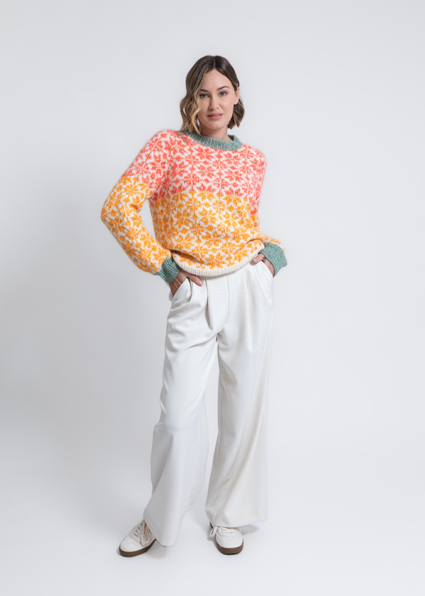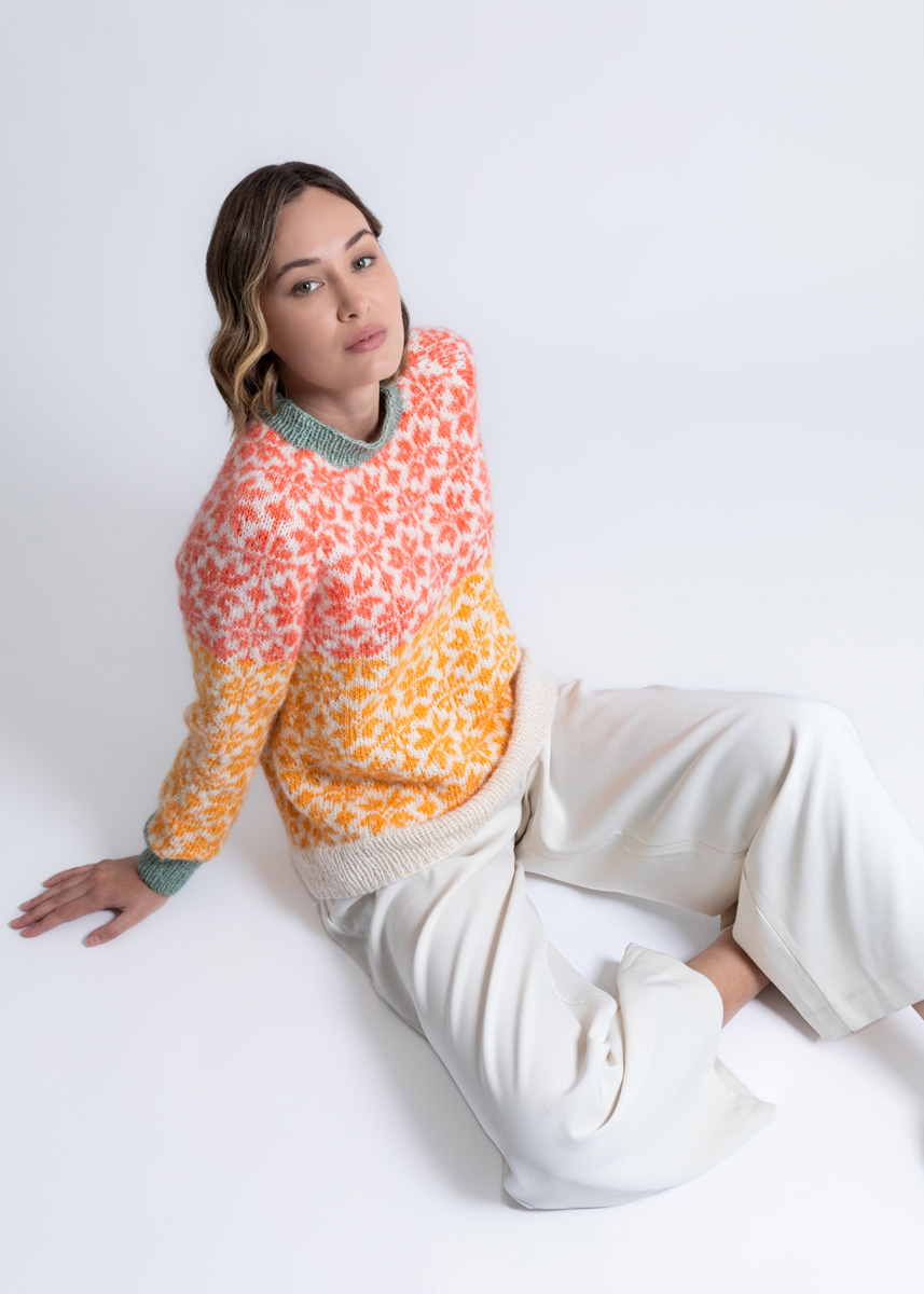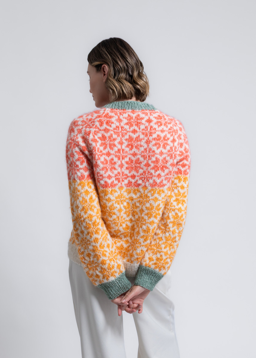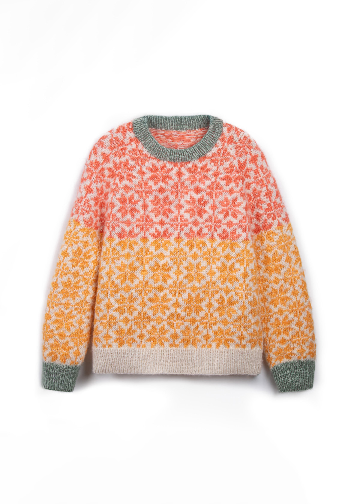 The pullover knitted in rounds up until the armholes, back and front are finished seperately. Sleeves are knitted in rounds up until the raglan decreases. The pullover has a total length of 61 (63 - 65 - 67 - 69 - 71) cm and a positive ease of 15 cm at 80 cm bust circumference (16 cm at 88 cm bust circumference - 8 cm at 96 cm bust circumference - 10 cm at 104 cm bust circumference - 7 cm at 116 cm bust circumference - 5 cm at 128 cm bust circumference).