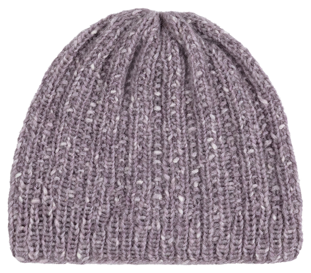 50 g of Lana Grossa Brigitte No. 2 Seta (38% baby alpaca, 33% acrylic, 25% Merino wool, 4% silk; 175 m/50 g) in Lilac Mélange (col 4). One set size 6 mm doublepointed needles [dpns]; size 6 mm circular needle, 40 cm long