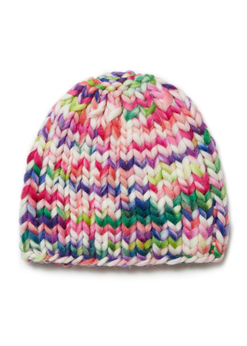 100 g of Lana Grossa Confetti (100% Merino wool; 50 m/100 g) in White/Neon Pink/Yellow/Neon Green/ Neon Orange/Jade (col 3). One set size 12 mm double-pointed needles [dpns].