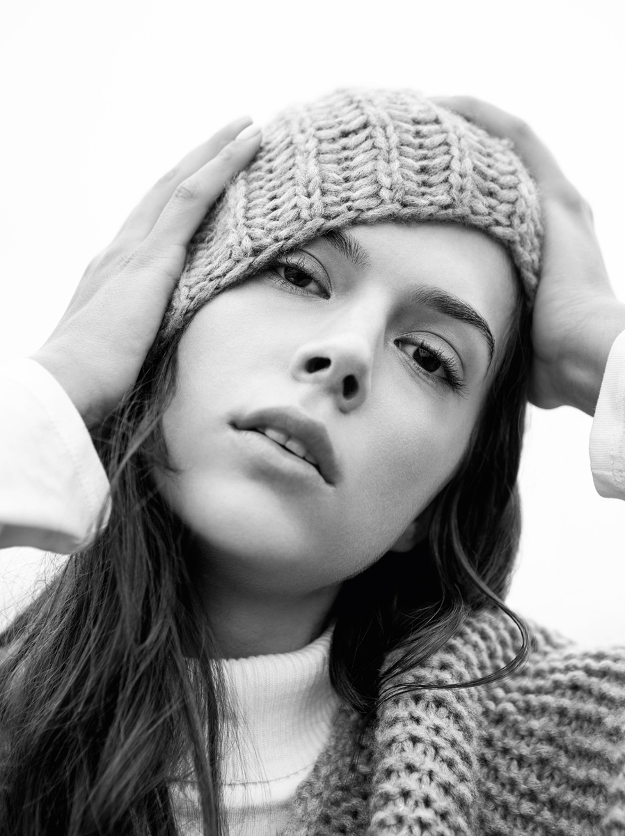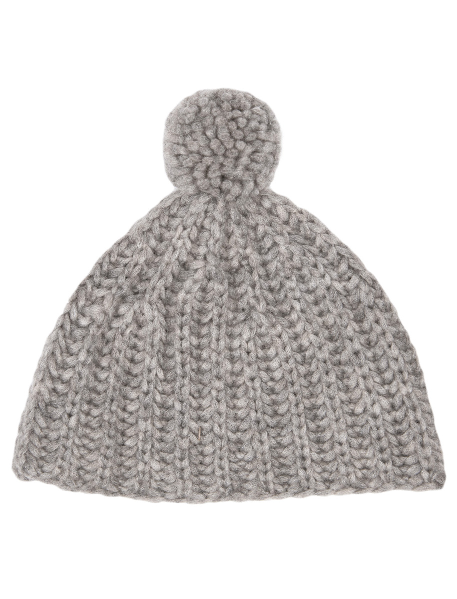 50 (50, 75) g of Lana Grossa Lala Berlin Lovely Cashmere (60% cashmere, 25% polyamide, 15% pure wool; 60 m/25 g) in Grey/Beige Mélange (col 9). One set size 7 mm double-pointed needles [dpns]; pompom maker
