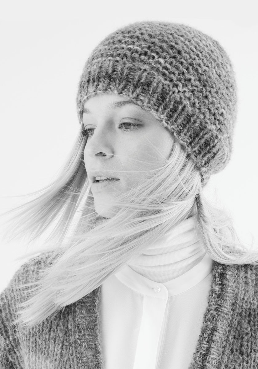 100 g of Lana Grossa Tutti (30% polyamide, 25% mohair, 25% superfine alpaca, 20% Merino wool; 330 m/100 g) in Grey/Pastel Red/Mustard/Orange-Brown/Natural/Charcoal (col 13). One set each size 6 and 7 mm double-pointed needles [dpns]; size 7 mm circular needle, 50 cm long