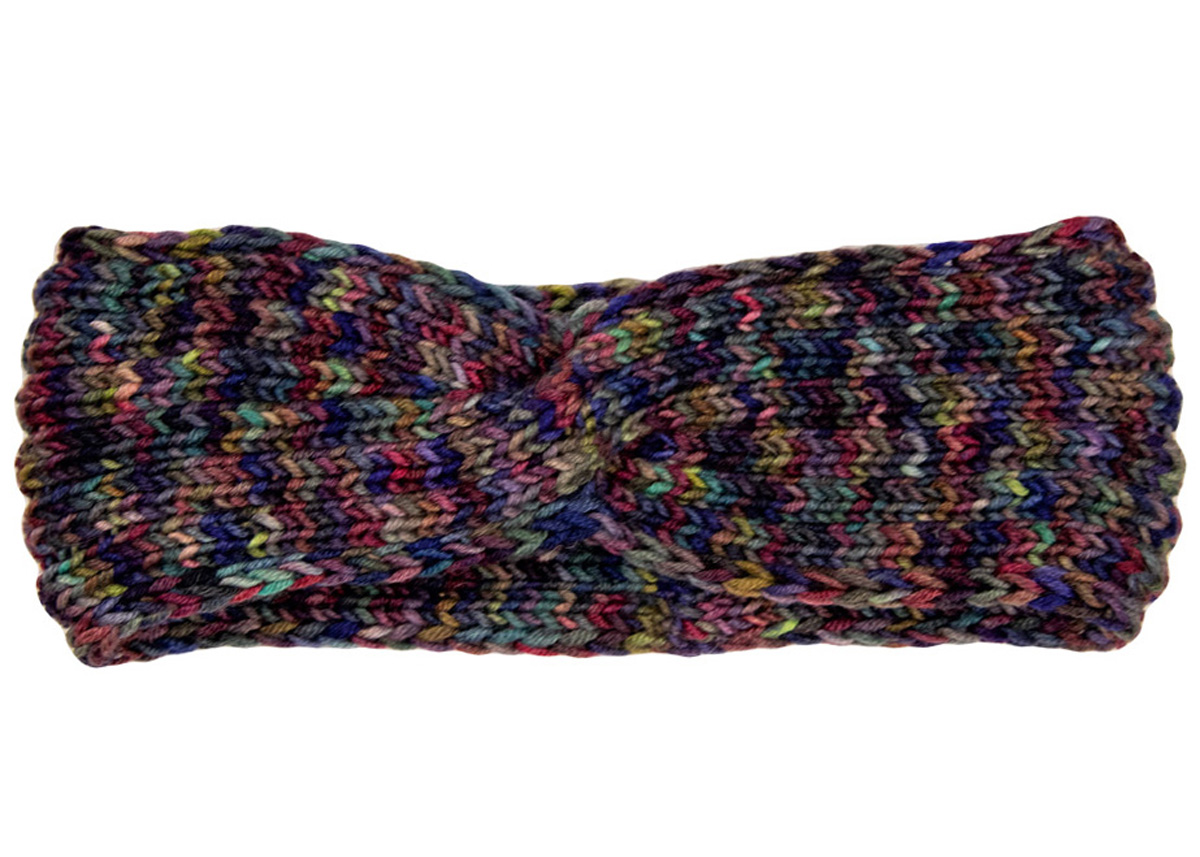 100 g of Lana Grossa Cool Wool Big hand-dyed (100% pure wool; 240 m/100 g) in Olive/Brown/Blackberry/ Bordeaux/Petrol/Jade/Brown (col 204). Size 4.5 mm needles; cable needle [cn]