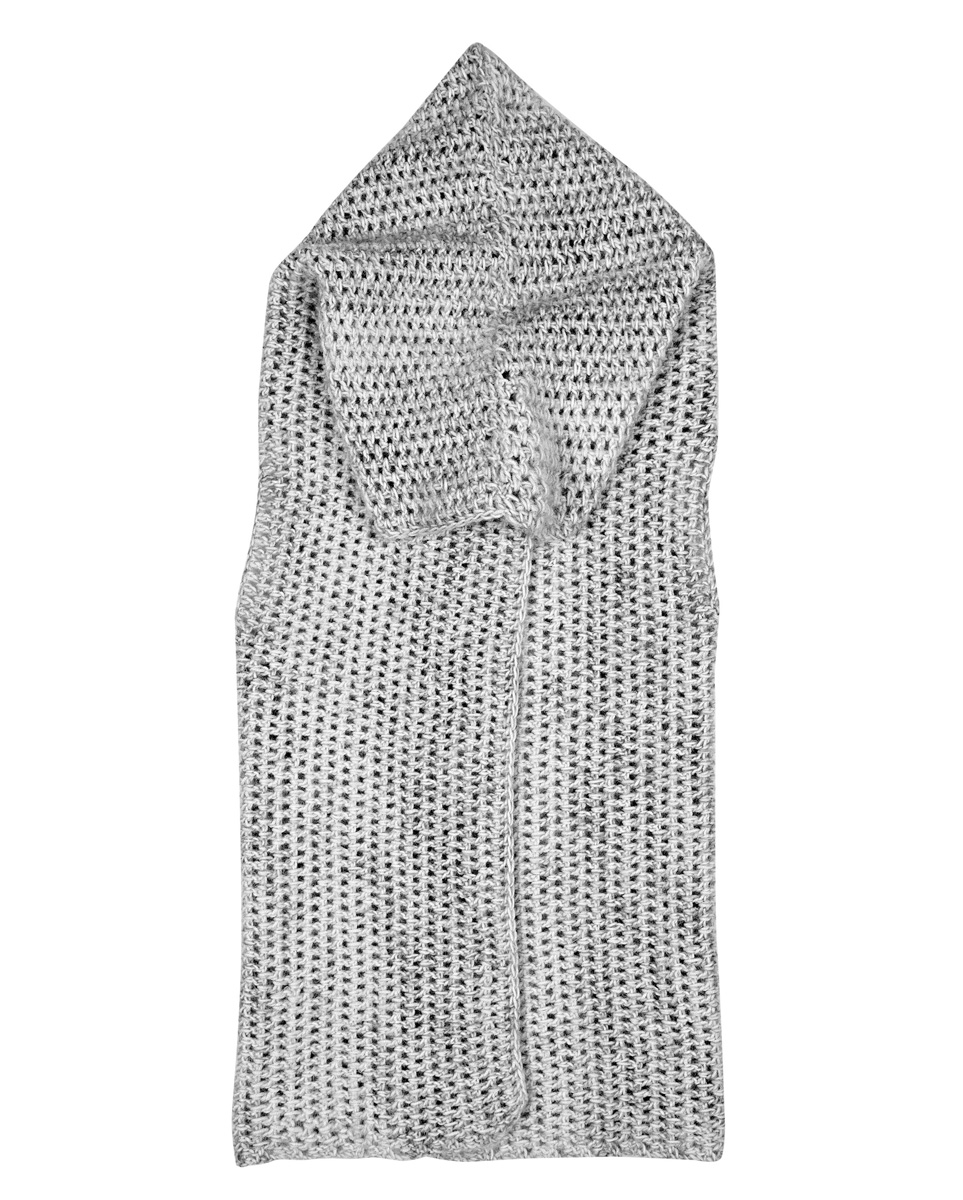 350 (400, 450) g of Lana Grossa Cool Wool (100% pure wool; 160 m/50 g) in Powder Pink (col 2018); 100 (150, 150) g of Lana Grossa Silkhair Print (70% superkid mohair, 30% silk; 400 m/50 g) in Pink/Salmon/Lilac/Beige (col 330). Size 6 mm crochet hook