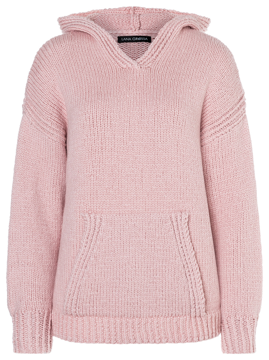 550 (600, 650) g of Lana Grossa Alta Moda Cashmere 16 (78% Merino wool, 12% cashmere, 10% polyamide; 110 m/50 g) in Pale Pink (col 39). Size 6 and 8 mm needles.