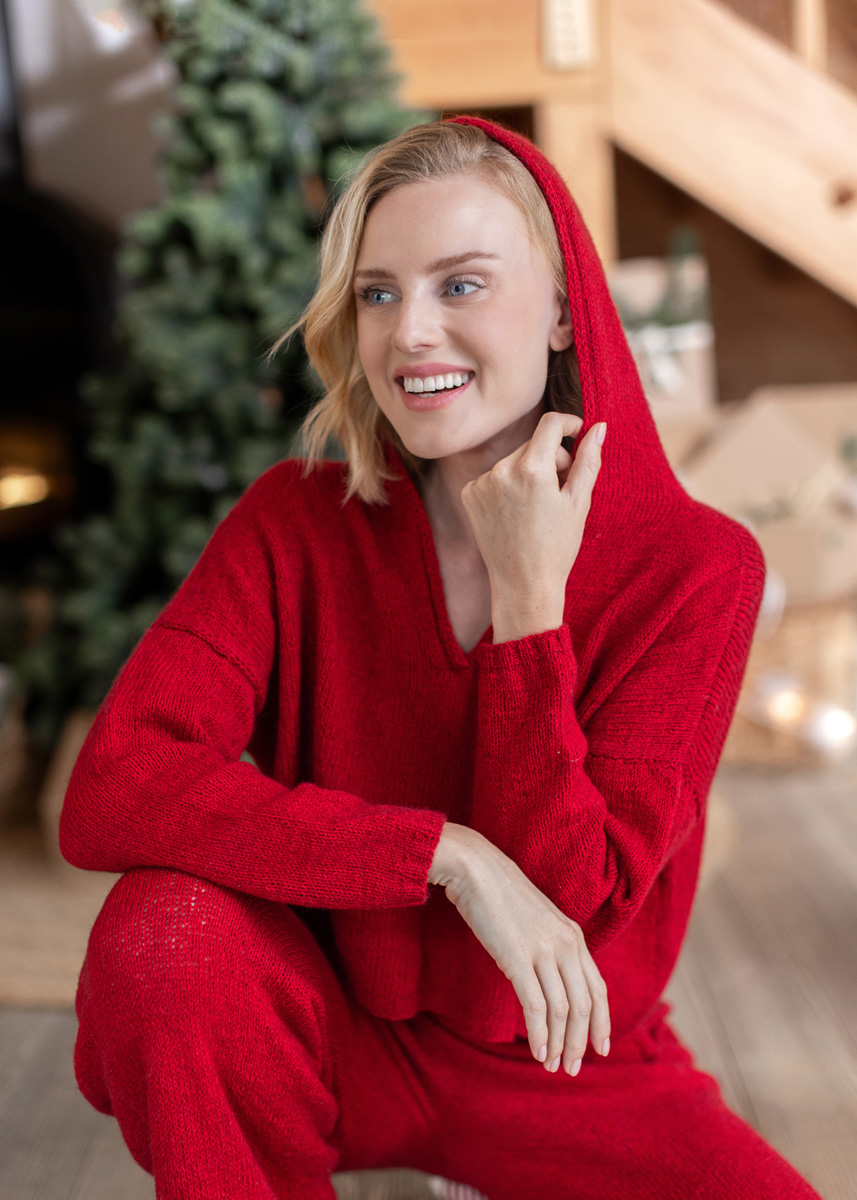 The hoodie has a total length of 46 (48 - 50 - 52 - 54 - 56) cm and a positive ease of 32 cm at 80 cm bust circumference (32 cm at 88 cm bust circumference - 32 cm at 96 cm bust circumference - 32 cm at 104 cm bust circumference - 28 cm at 116 cm bust circumference - 24 cm at 128 cm bust circumference).