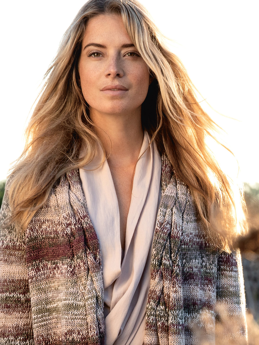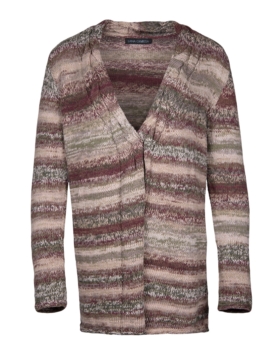 750 (800, 850) g of Lana Grossa A Mano (100% organic cotton; 110 m/50 g) in Natural/Greige/Beige/Dark Brown/Khaki/Grey-Green (col 12). Size 3.5 and 4.5 mm needles; cable needle [cn].