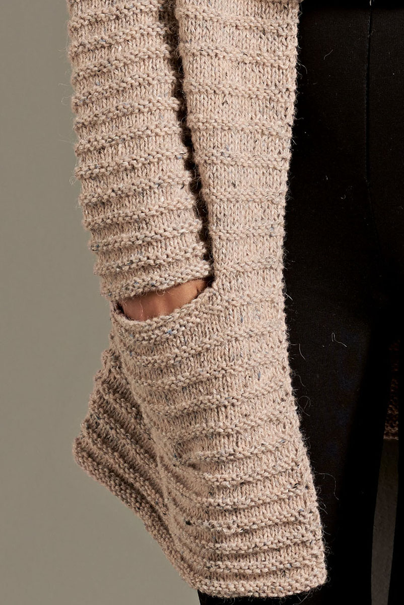 650 (700, 750) g of Lana Grossa Ascot (57% pure wool, 18 % alpaca, 25% viscose; 120 m/50 g) in Heathered Powder (col 15). Size 5 mm needles