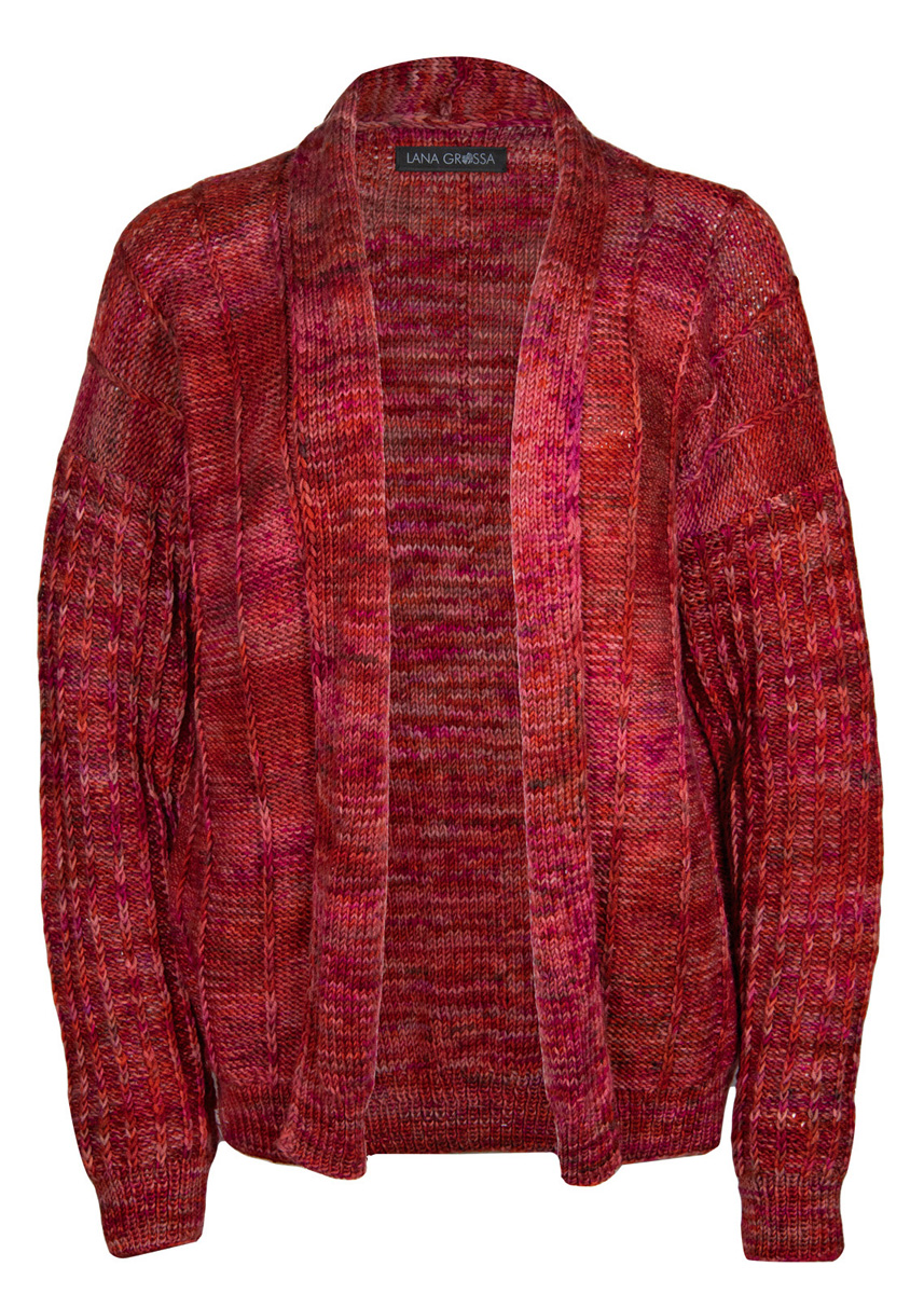 700 (700, 800) g of Lana Grossa Cool Wool Big hand-dyed (100% pure wool; 240 m/100 g) in Red/Terracotta/Pink/Cyclamen/ Chocolate Brown/Antique Pink (col 201). Size 3.5 and 4.5 mm needles