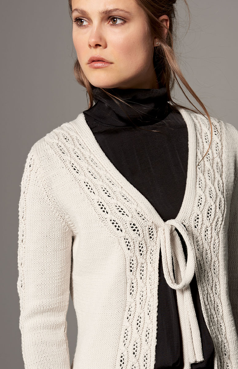 450 (500) g of Lana Grossa Cool Wool (100% wool; 160 m/50 g) in Natural (col 590). Size 3.5 mm needles; cable needle [cn].