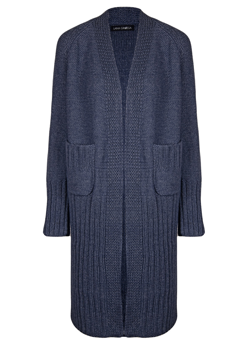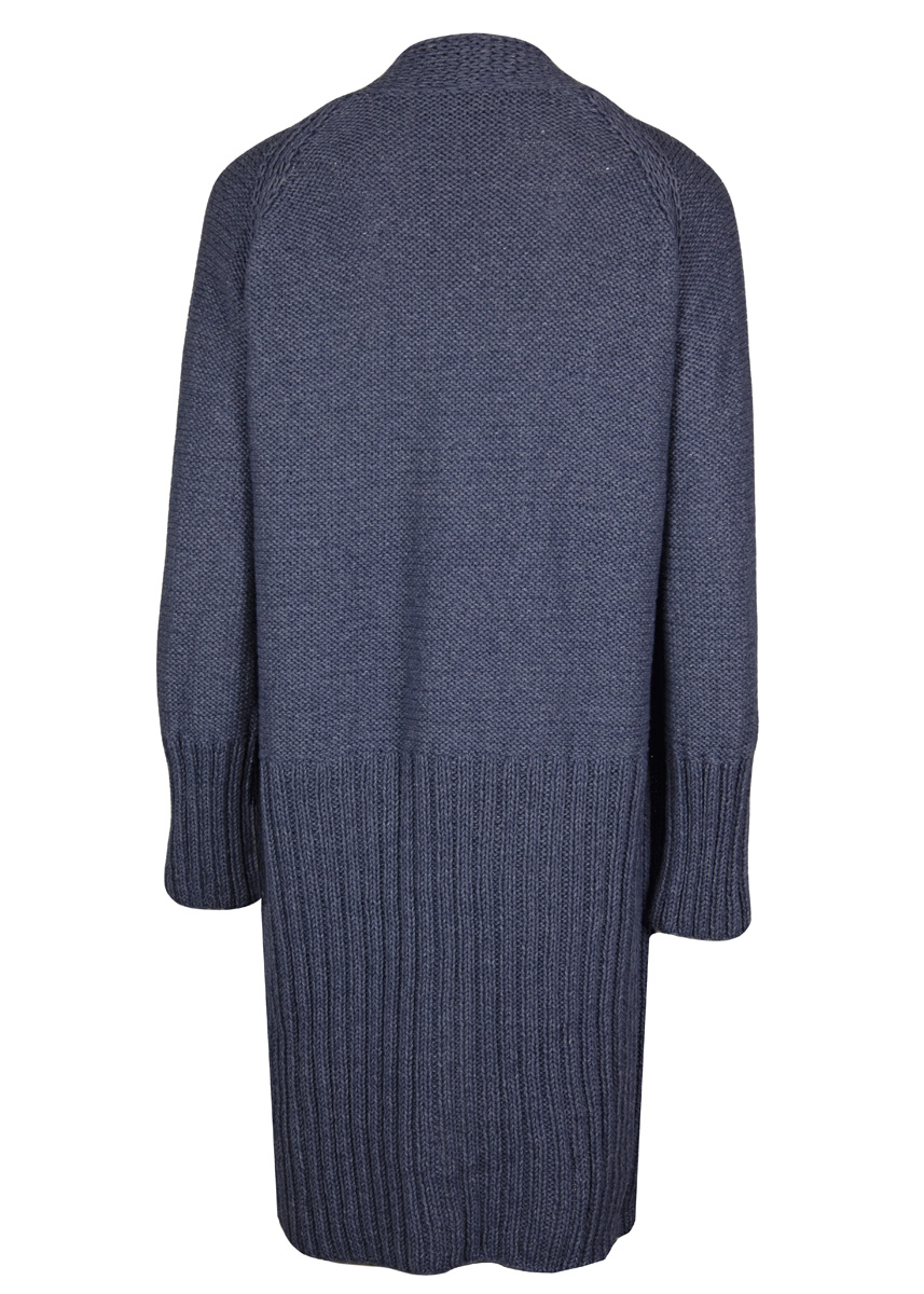 650 (700) g of Lana Grossa Fourseason (45% extrafine organic Merino wool, 40% organic cotton, 15% recycled cashmere; 105 m/50 g) in Jeans (col 3). Size 4.5 and 5.5 mm needles