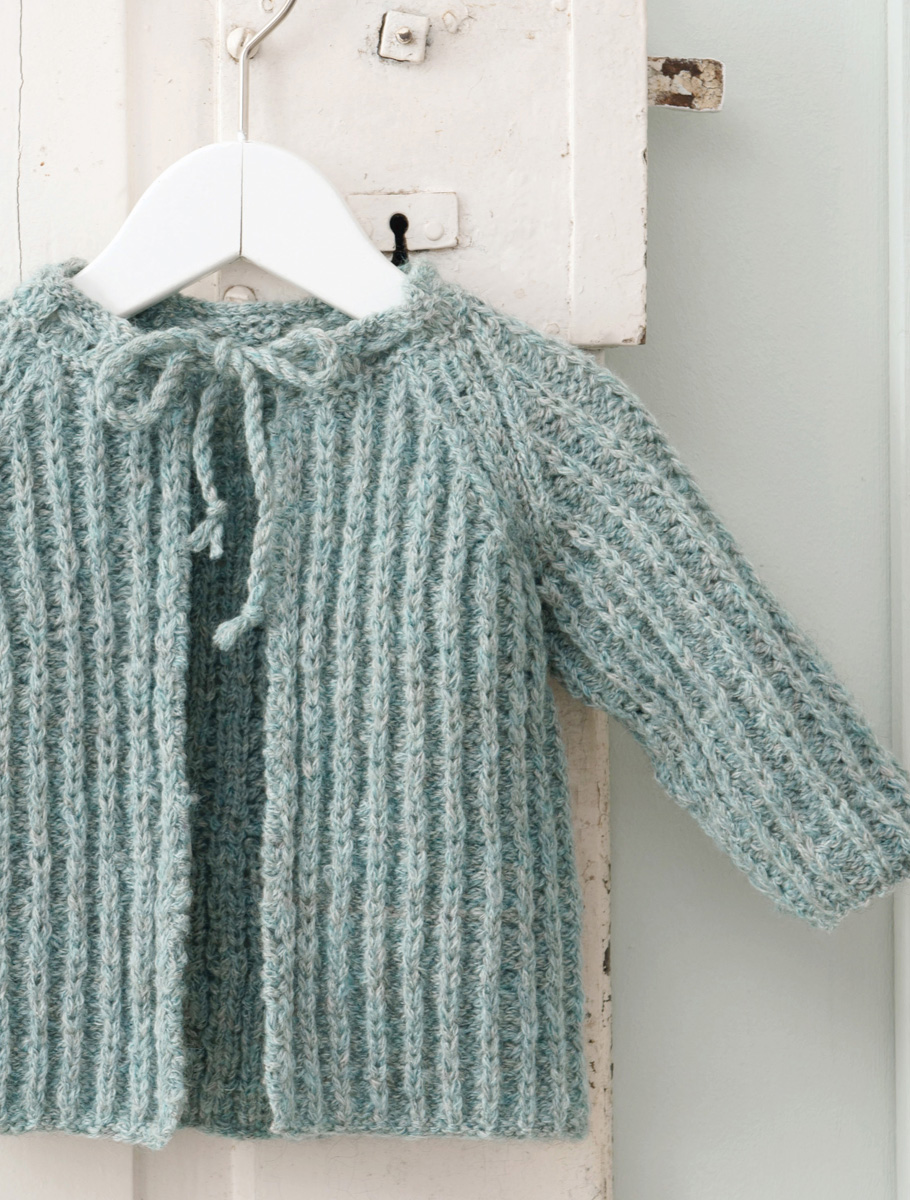 100 g of Lana Grossa Smokey (46% pure wool, 41% cotton, 8% polyamide, 5% yak; 225 m/50 g) in Pastel Petrol/Light Grey (col 212). Size 4 mm needles; size 4 mm circular needle, 40 cm long