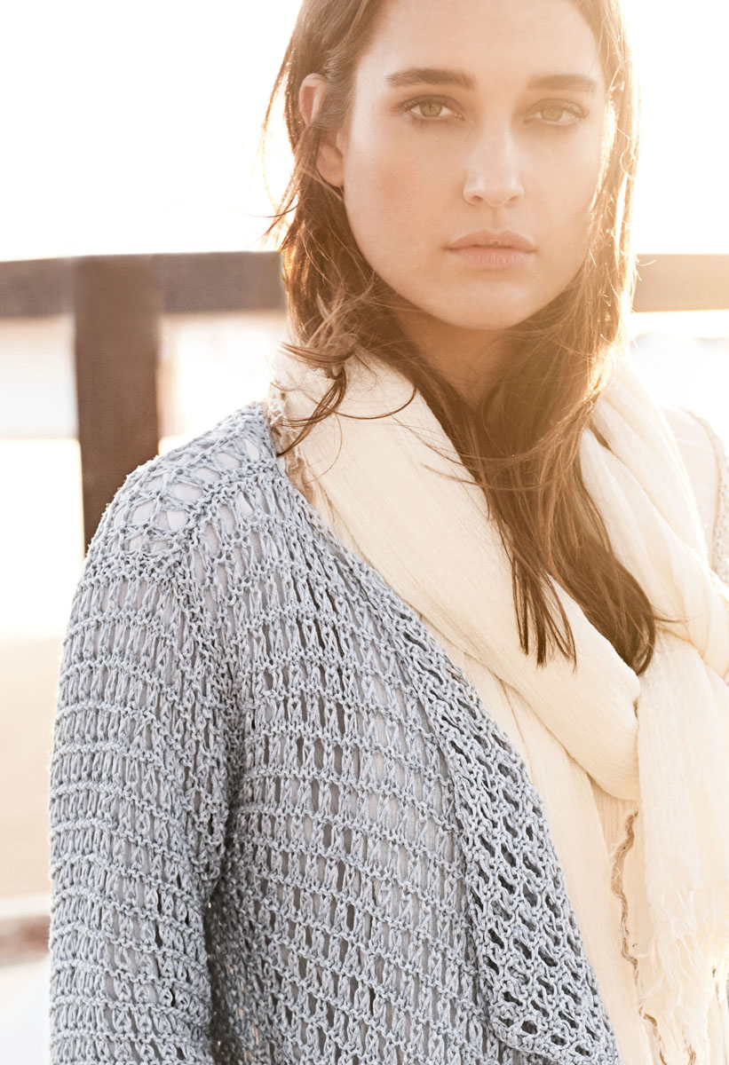 400 (450, 500) g of Lana Grossa Solo Lino Mélange (80% recycled linen (viscose), 20% linen; 105 m/50 g) in Pastel Blue Mélange (col 108). Size 4.5 mm needles
