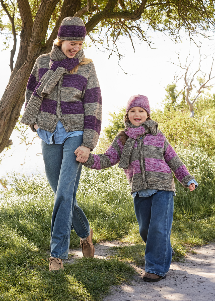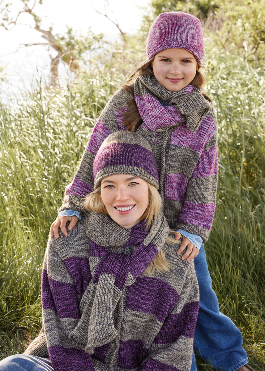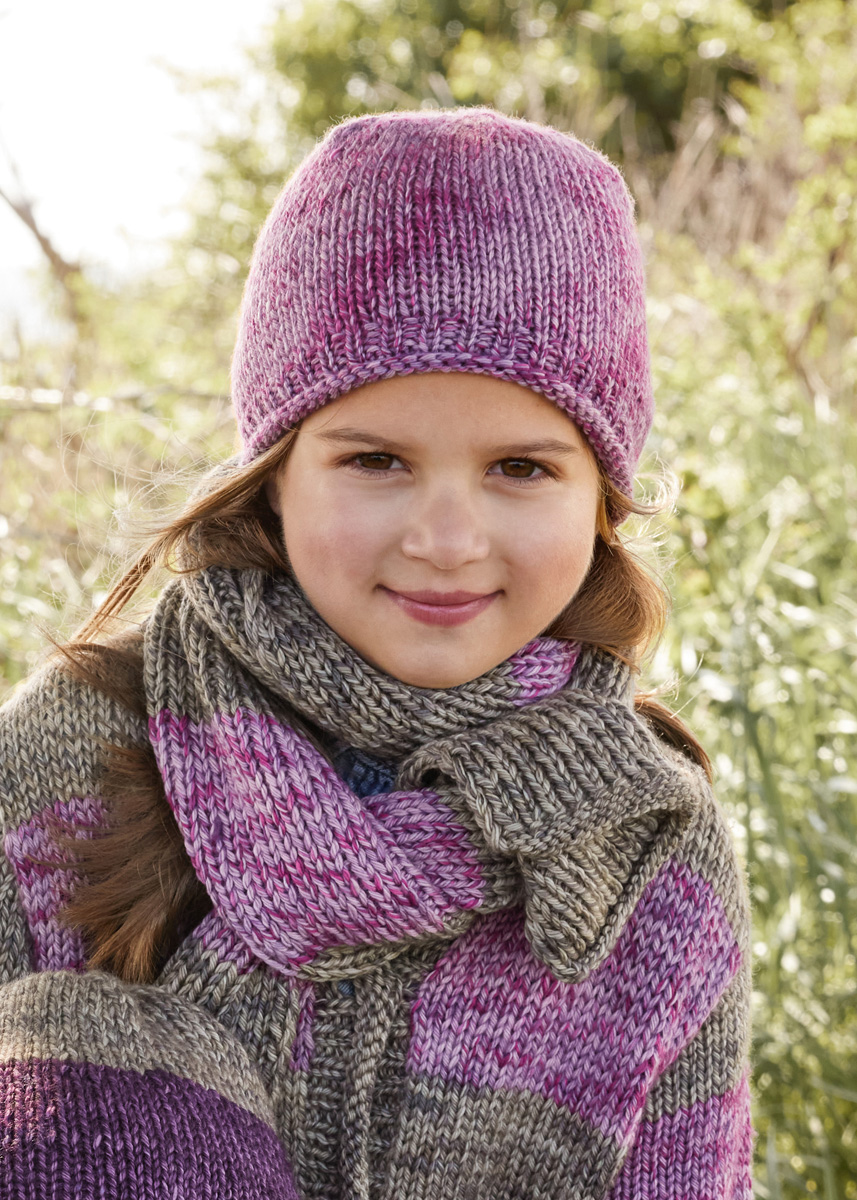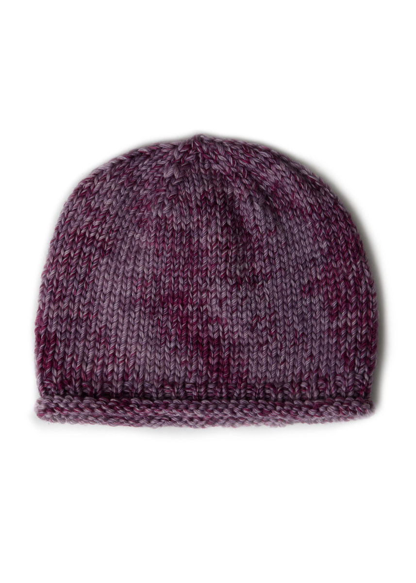 50 g of Lana Grossa Vintage Chunky (100% Merino wool; 80 m/50 g) in Grey Beige/Mauve (col 7). One set each size 5 and 6 mm double-pointed needles [dpns]; 6 stitch markers