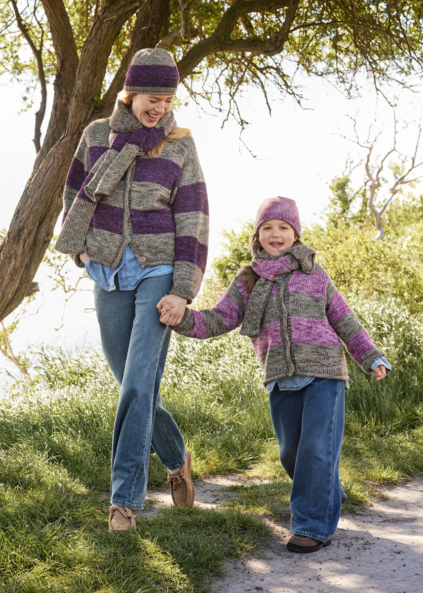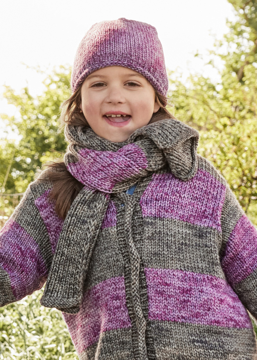 100 g of Lana Grossa Vintage Chunky (100% Merino wool; 80 m/50 g) in Grey Beige/Mauve (col 7) and 150 g in Beige/Khaki (col 1). Size 6 mm needles.