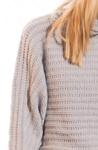 450 (500, 550) g of Lana Grossa Cool Wool Alpaca (70% Merino wool, 30% baby alpaca; 50 g = 140 m) in Pale Purple (col 19). Size 5 mm needles; size 4 mm circular needle, 60 cm long.