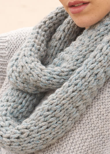 GUTSY CABLE adorns this garter stitch pullover that’s worked in one piece from sleeve cuff to sleeve cuff. Wear it over tees for added warmth and style. The loop is worked in an easy drop stitch pattern with instructions for 7 yarn and color choices.