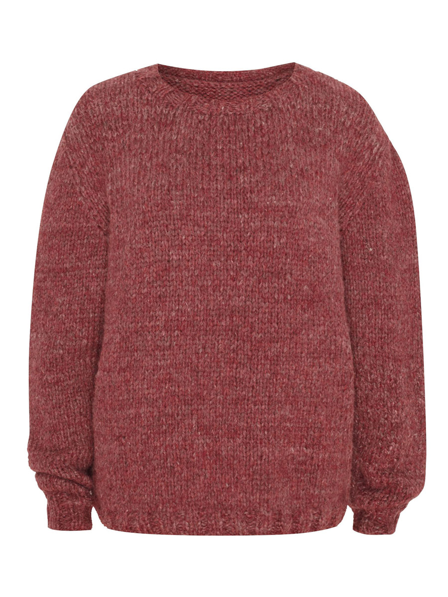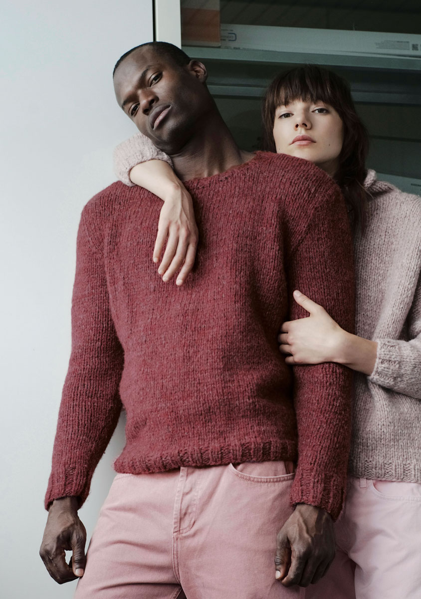 350 (400, 450) g of Lana Grossa Lala Berlin Lovely (52% alpaca, 18% cashmere, 18% pure wool, 12% polyamide; 90 m/50 g) in Dark Red Melange (col 12). Size 6 and 7 mm needles; size 6 mm circular needle, 40 cm long