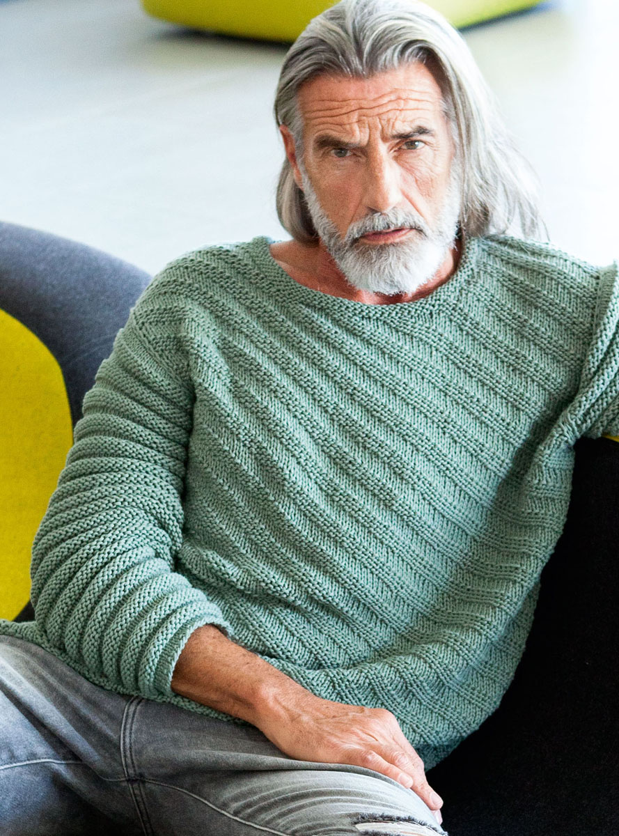 600 (650) g of Lana Grossa Only Cotton (100% cotton; 110 m/ 50 g) in Reseda Green (col 24). Size 5 and 6 mm needles; size 5 mm circular needle, 50 cm long