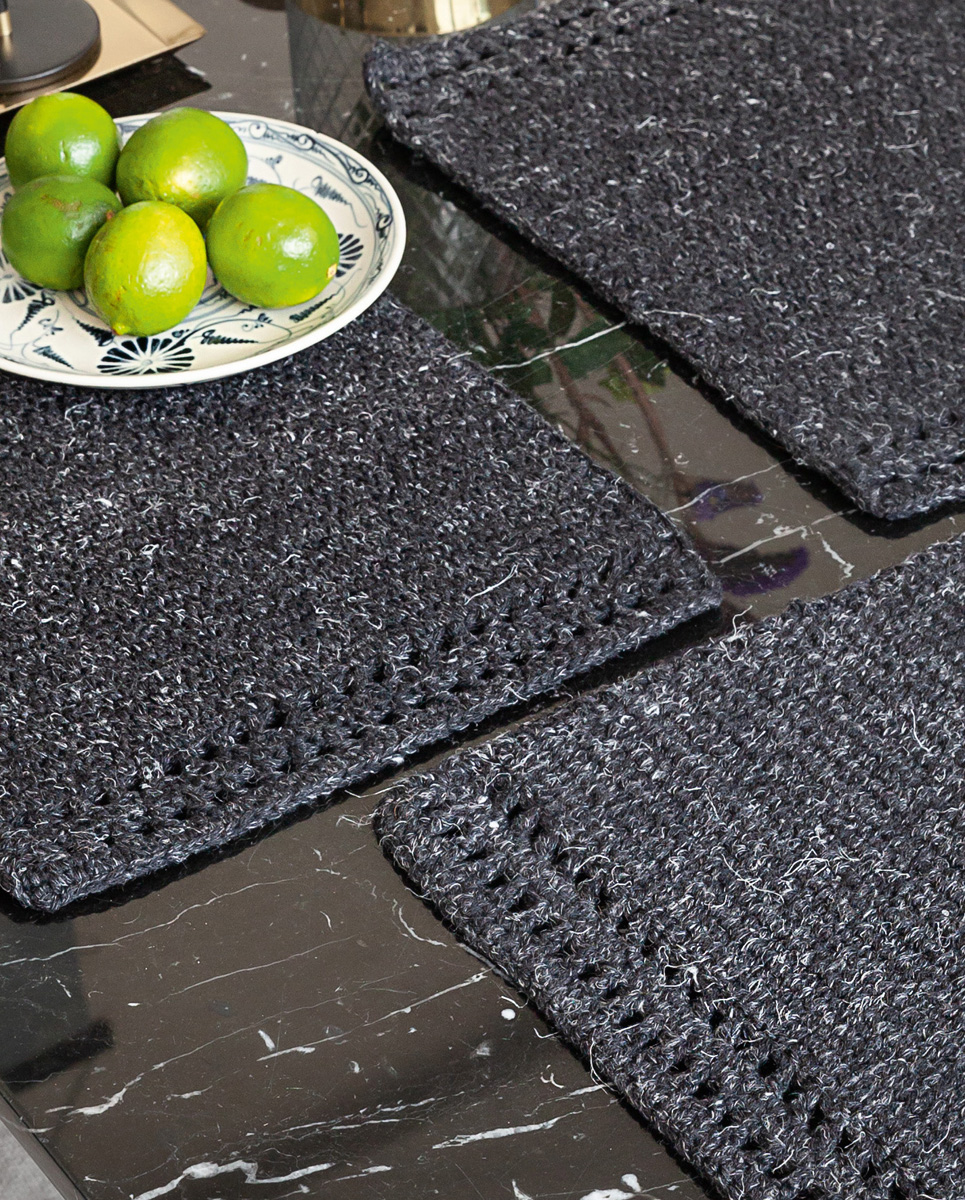 850 g of Lana Grossa Slow Wool Canapa (90% superwash Merino wool, 10% hemp; 100 m/50 g) in Charcoal (col 7). Size 7 mm crochet hook