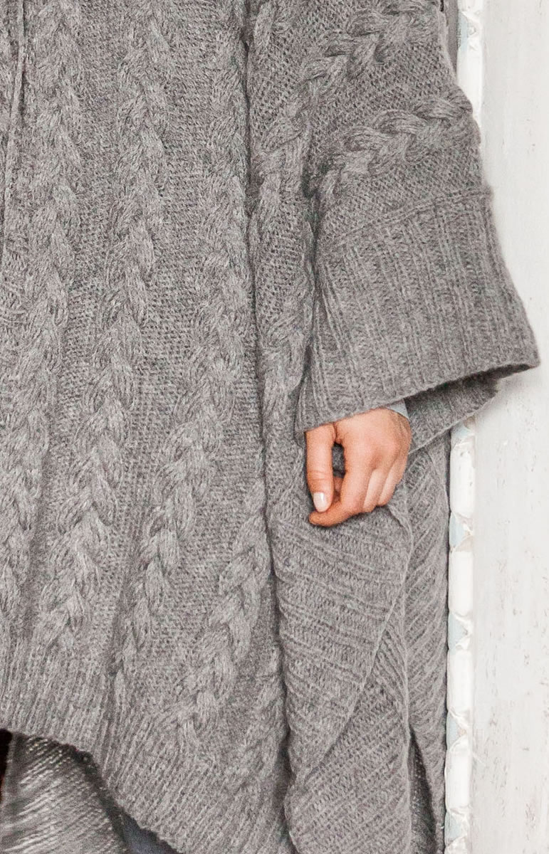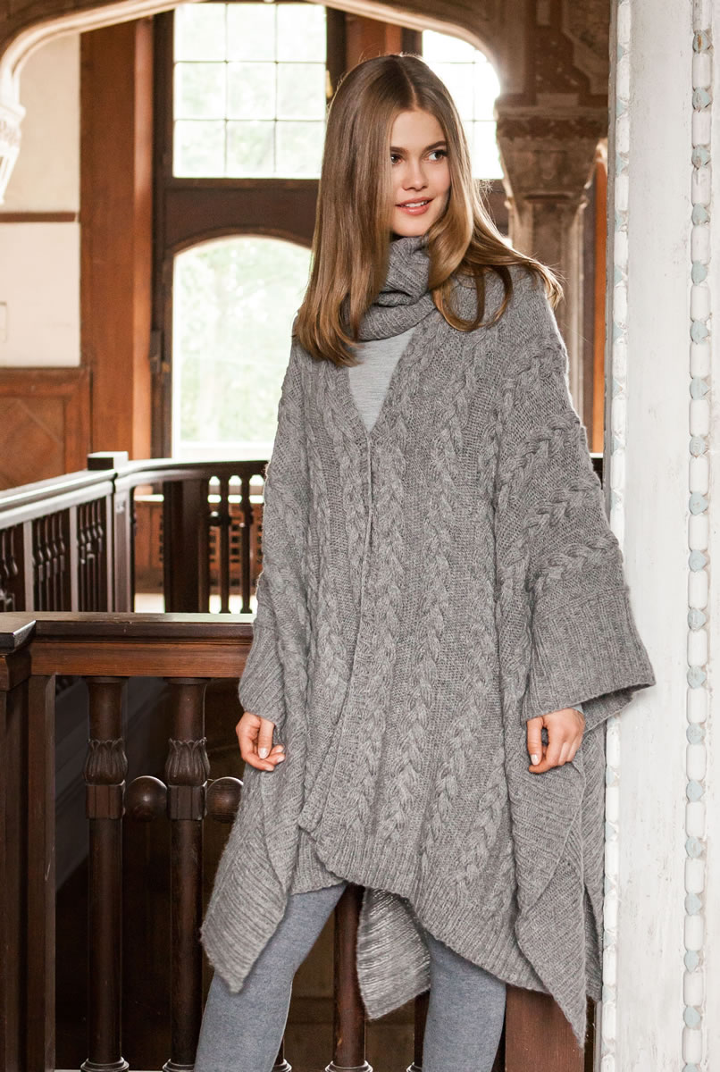 700 g of Lana Grossa Arioso (48% Merino wool, 30% baby alpaca, 22% polyamide; 240 m/50 g) in Grey (col 11). Size 5 mm circular needles, 80 and 120 cm long; cable needle [cn].