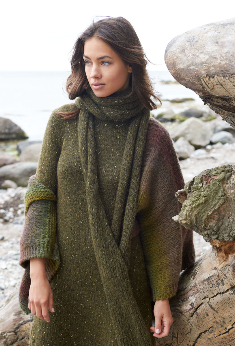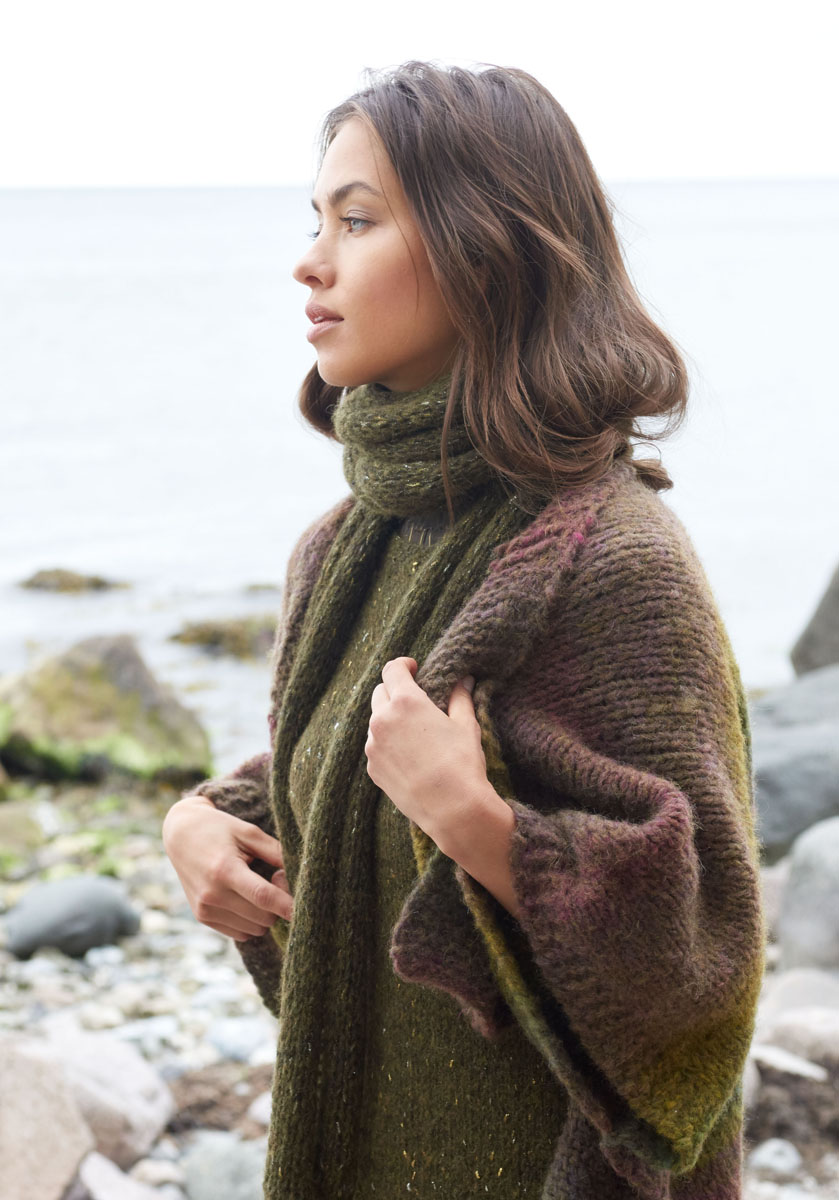 350 (400) g of Lana Grossa Cloud Dégradé (48% alpaca, 37% wool, 15% polyamide; 80 m/50 g) in Berry/Olive (col 105). Size 8 mm circular needle, 80 cm long.