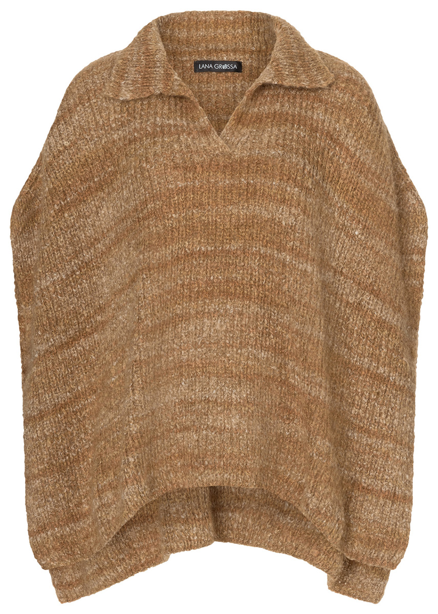 300 g of Lana Grossa Inizio Pelo (40% baby alpaca, 30% Merino wool, 15% polyamide, 9% Modal, 6% cotton; 185 m/50 g) in Beige/Camel (col 1). Size 4.5 mm circular needles, 60 and 100 cm long