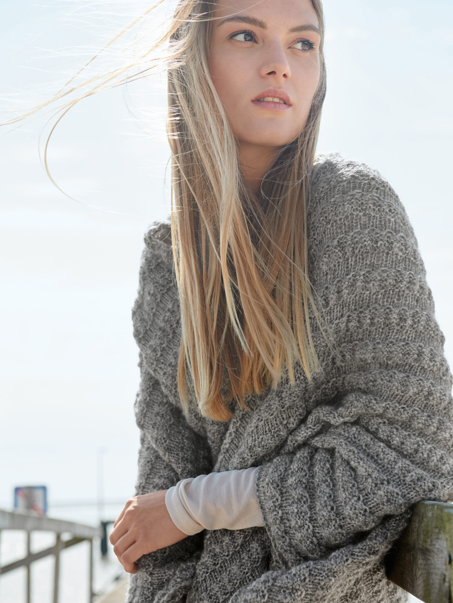 325 g of Lana Grossa Mia (30% mohair, 26% pure wool, 25% silk; 19% polyamide; 105 m/25 g) in Silver Grey (col 7). Size 4.5 mm circular needle, 80 cm long