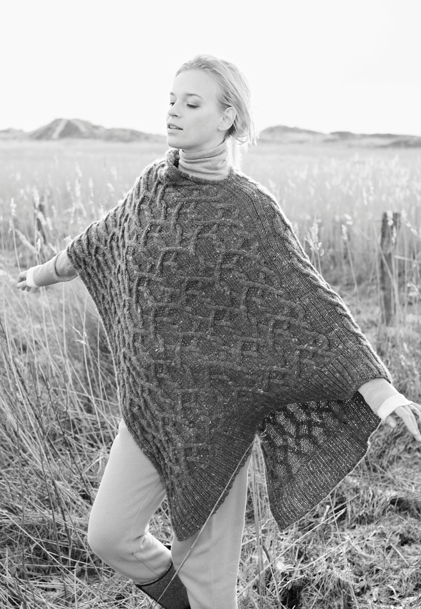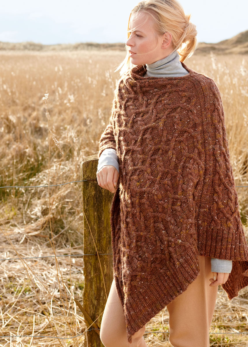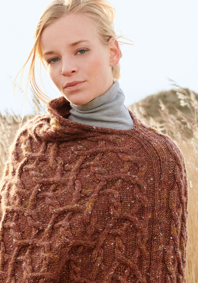 650 g of Lana Grossa Only Tweed (76% superwash Merino wool, 16% acrylic, 5% silk, 3% viscose; 135 m/50 g) in Red-Brown/Olive/Natural/Charcoal (col 105). Size 5.5 mm circular needle, 80 cm long; cable needle [cn]