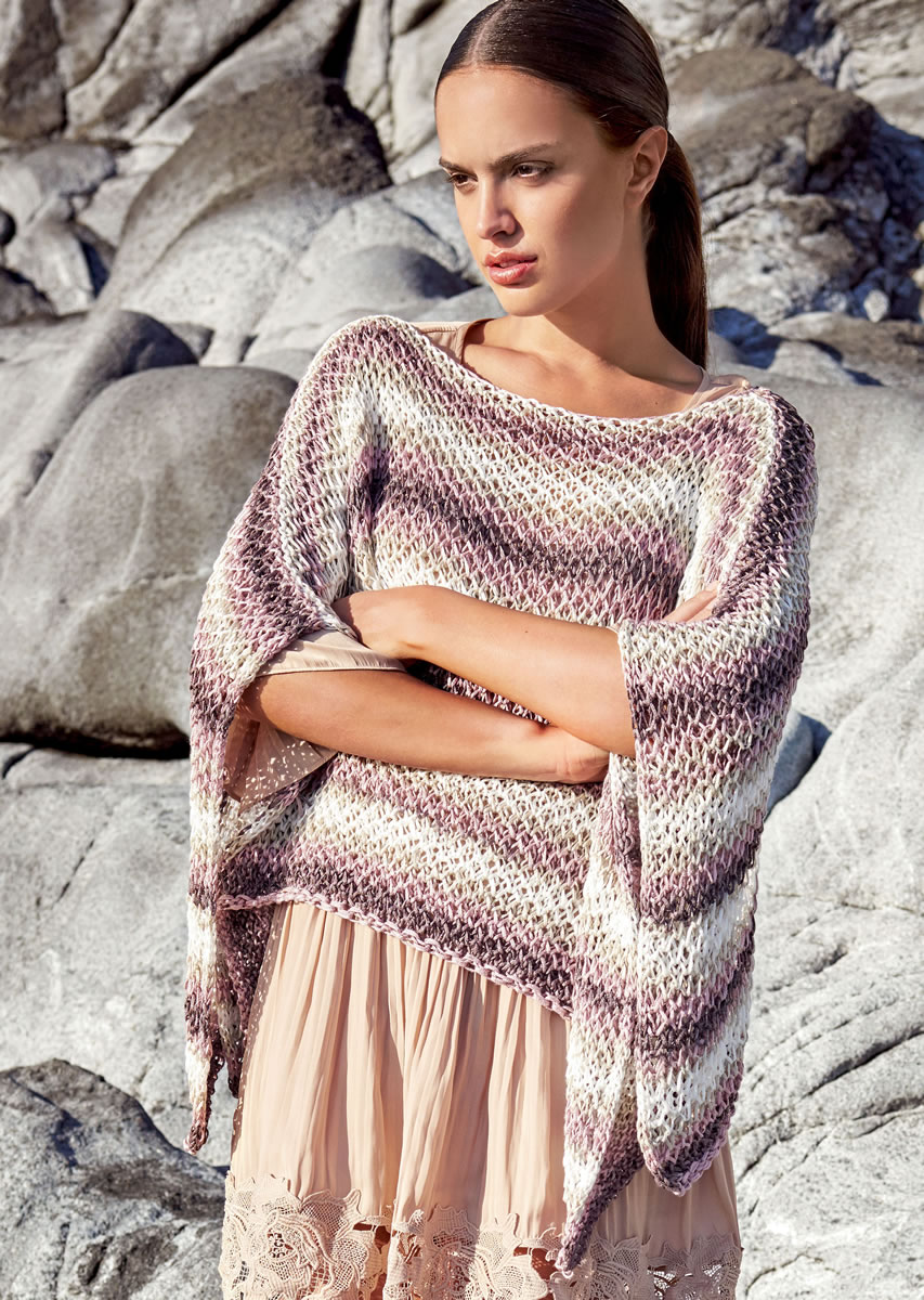 450 g of Lana Grossa Di Moda (82% viscose, 18% polyester; 100 m/50 g) in Natural/Antique Pink/Pink-Grey/Taupe (col 5). Size 8 mm circular needle, 100 cm long.