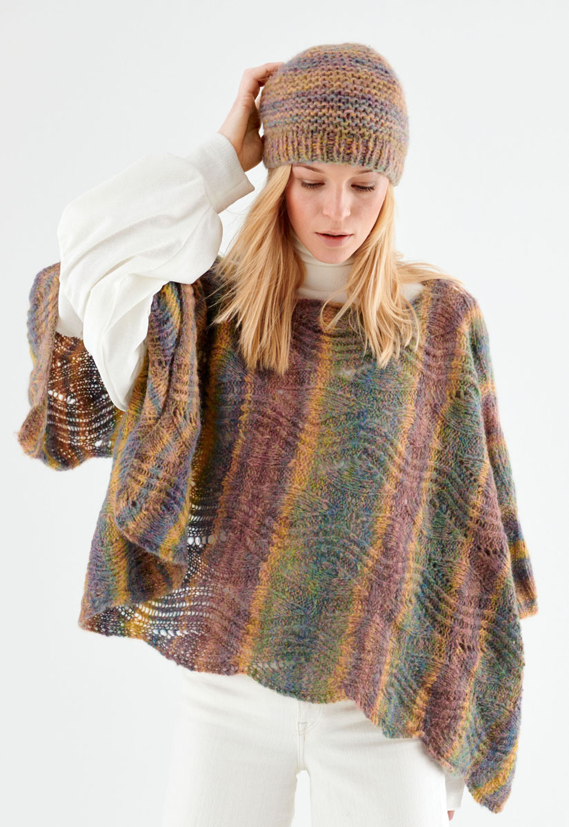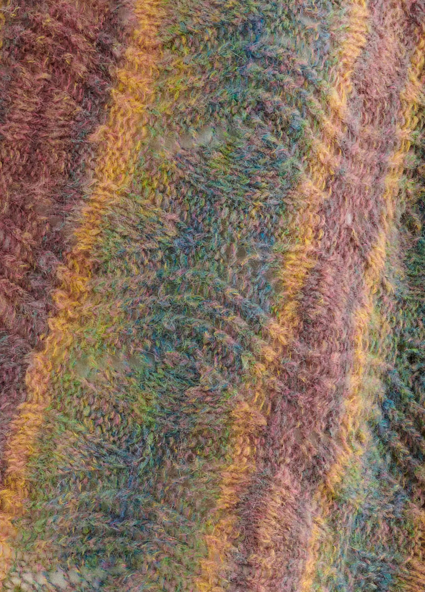 300 g of Lana Grossa Tutti (30% polyamide, 25% mohair, 25% superfine alpaca, 20% Merino wool; 330 m/100 g) in Orange/Lilac/Yellow-Green/Pink/Violet (col 1). Size 5 mm circular needle, 80 cm long