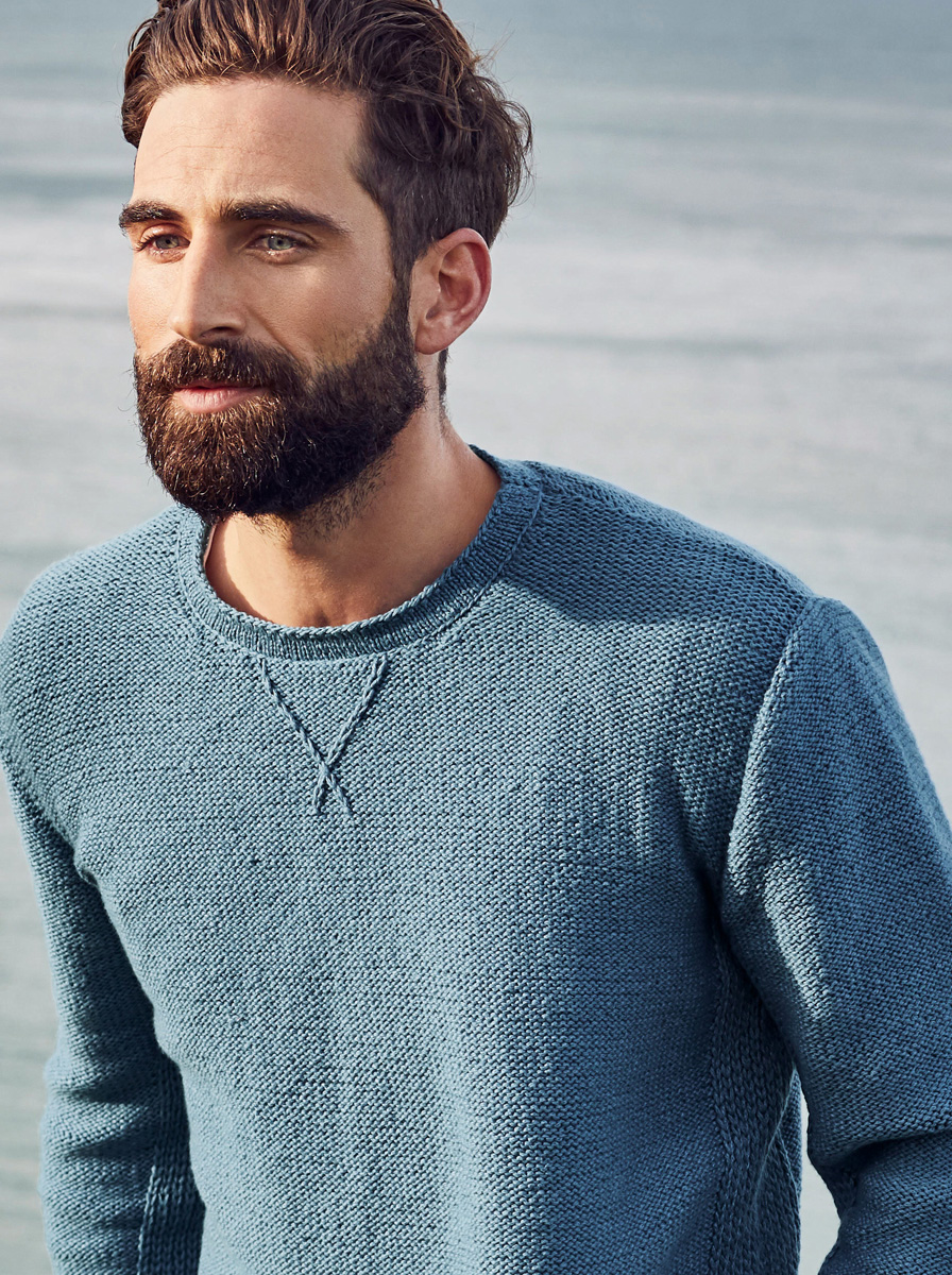 450 (500, 550) g of Lana Grossa 365 Cashmere (77% cotton, 15% cashmere, 8% polyamide; 175 m/50 g) in Jeans (col 47). Size 3 and 4 mm needles; size 3 or 4 mm circular needle, 40 cm long; cable needle [cn]