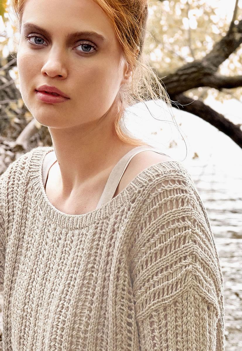 300 (350, 400) g of Lana Grossa 365 Yak (66% cotton, 22% polyamide, 12% yak; 145 m/50 g) in Natural/Grège (col 1). Size 5 and 5.5 mm needles; size 5 mm circular needle, 40 cm long.