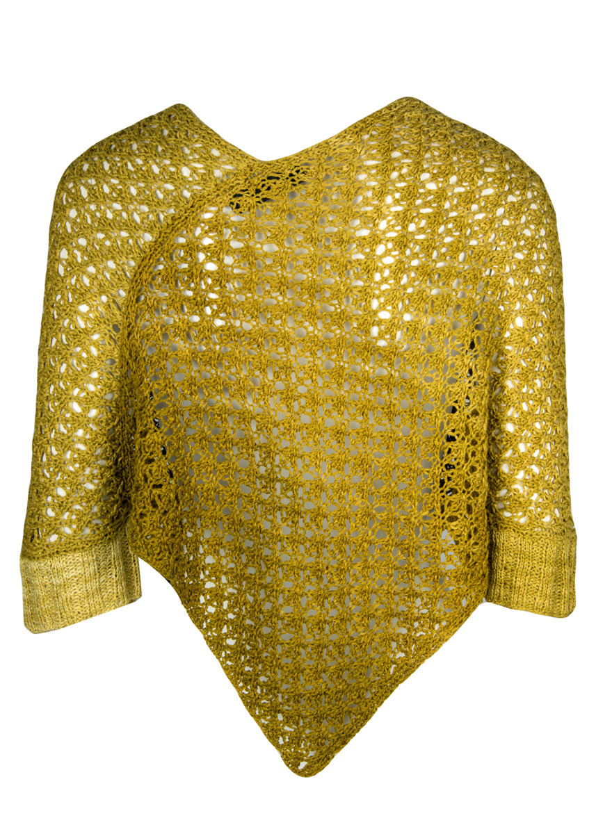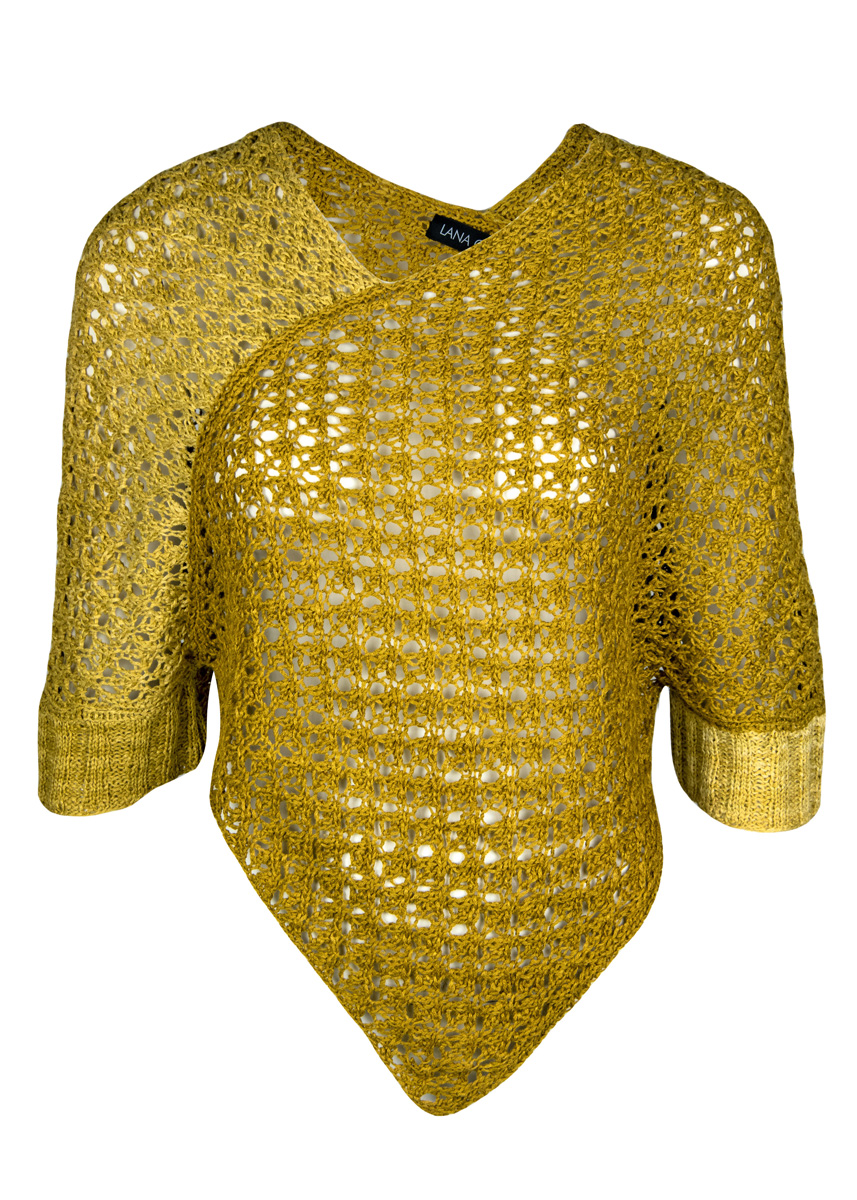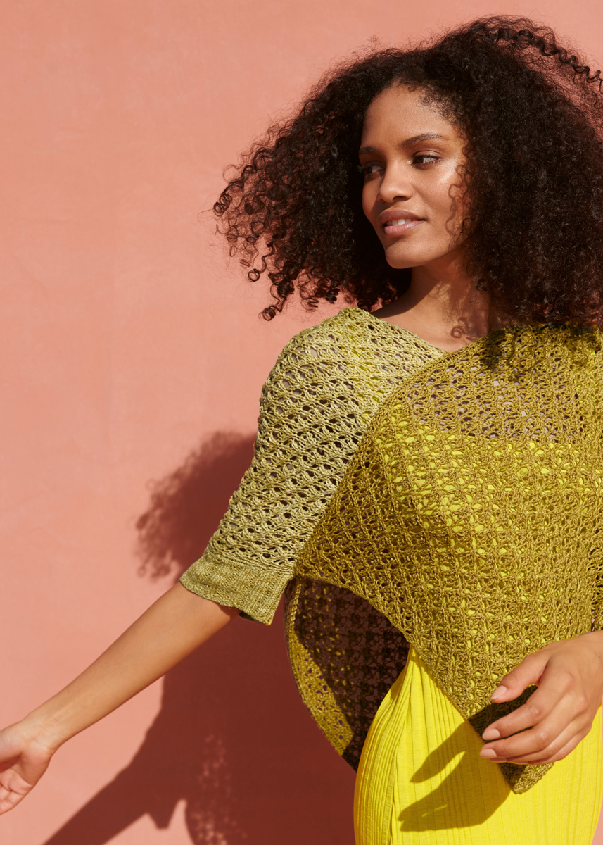 300 g of Lana Grossa About Berlin Chilly Dégradé (100% linen; 95 m/50 g) in Olive (col 101). Size 4 mm needles; one set size 3 mm double-pointed needles [dpns]