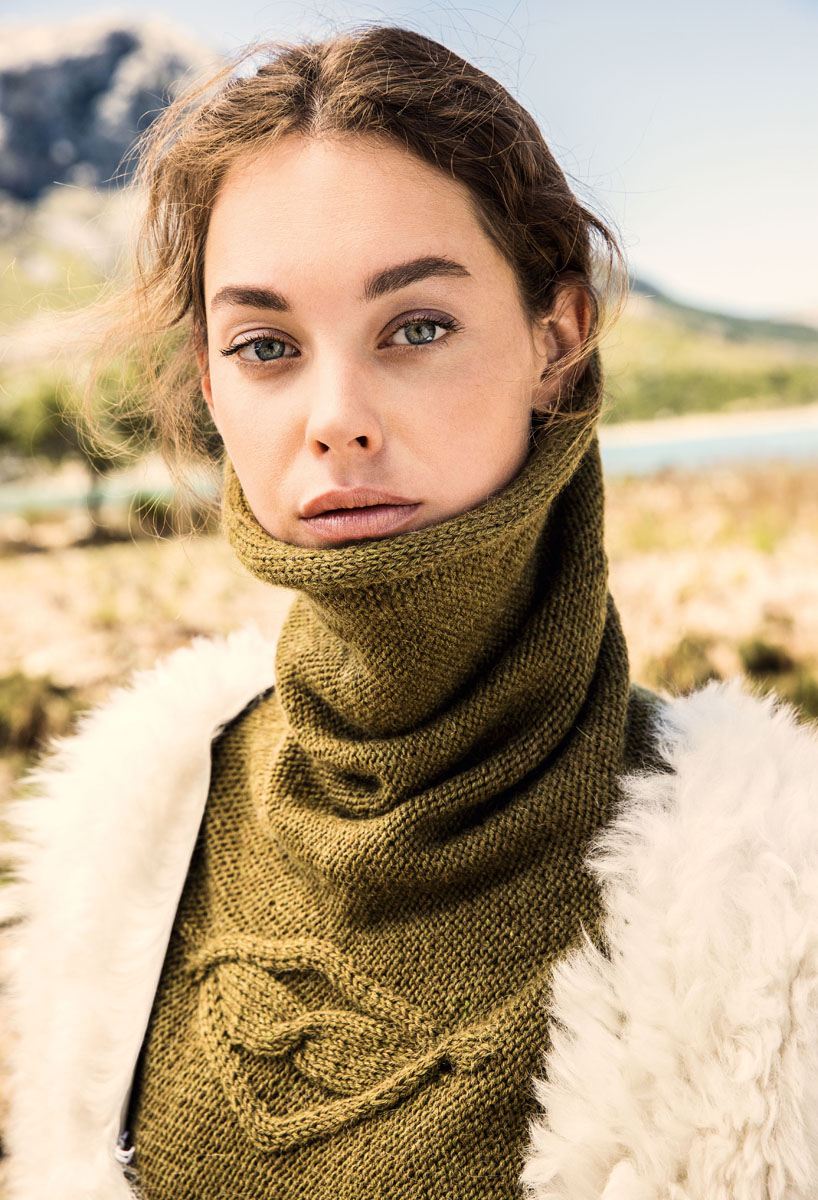 650 (700, 750) g of Lana Grossa Alpaca Peru 100 (100% alpaca; 100 m/50 g) in Olive (col 113). Size 4 and 4.5 mm needles; size 4 mm circular needle, 80 cm long; cable needle [cn]