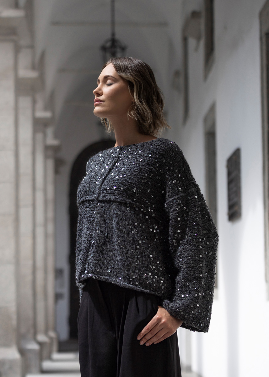 The pullover has a total length of 54 (56 - 58 - 60 - 62 - 64) cm and a positive ease of 14 cm at 80 cm bust circumference (12 cm at 88 cm bust circumference - 12 cm at 96 cm bust circumference - 10 cm at 104 cm bust circumference - 10 cm at 116 cm bust circumference - 10 cm at 128 cm bust circumference).