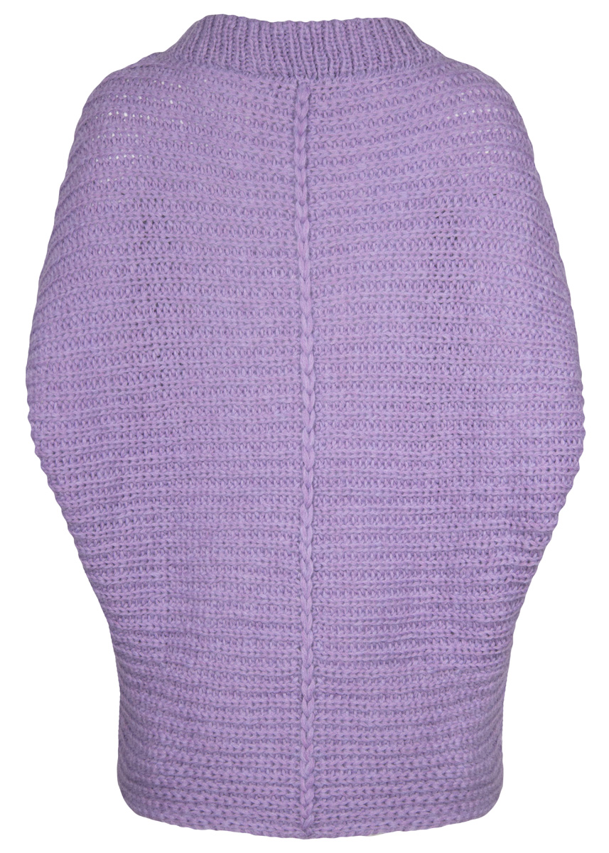 350 (400, 450) g of Lana Grossa Brigitte No. 2 (47% baby alpaca, 45% cotton, 8% Merino wool; 140 m/50 g) in Purple (col 26). Size 5.5 and 6 mm circular needles, each 80 cm long; size 5 mm circular needle, 60 cm long; tapestry needle