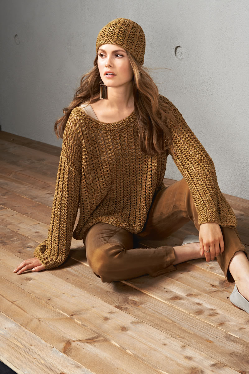 Slouchy yet sophisticated, this pullover in shimmery copper is ultra glamourous.