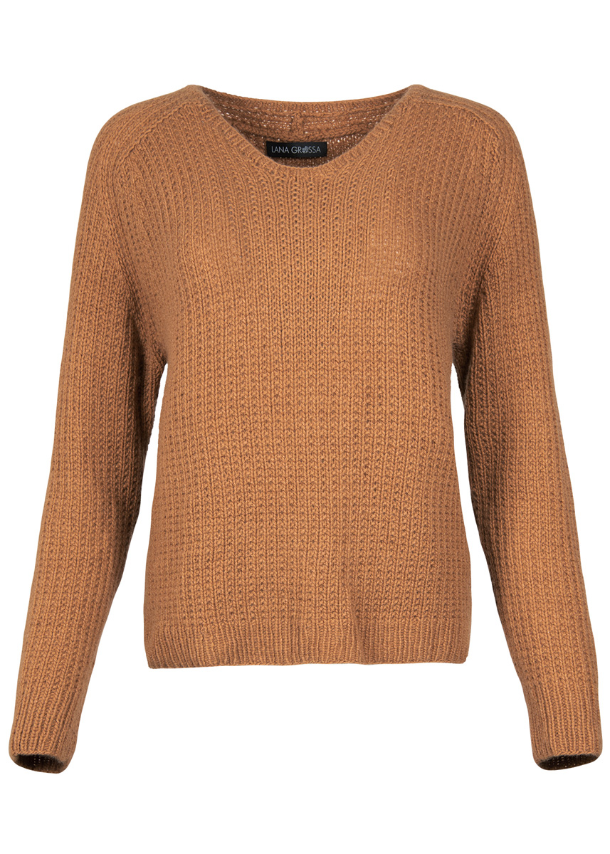 325 (350, 375) g of Lana Grossa Cashmere Puro (100% cashmere; 82 m/25 g) in Camel (col 6). Size 4 and 5 mm needles; size 4 mm circular needle, 40 cm long